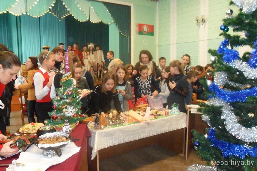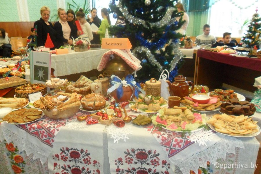 Конкурс «Рождественские блюда» состоялся 16 января 2018 года в актовом зале ГУО «Средняя школа № 4 им. В. А. Маркелова г. Гомеля». После небольшого театрализованного представления, подготовленного учащимися школы, были продемонстрированы рождественские блюда. В конкурсе приняли участие ребята 1-11 классов. Уже несколько лет подряд они соревнуются в том, как оригинальнее украсить рождественский стол, а также в своих поварских навыках. Изобилие и разнообразие приготовленных блюд не оставили равнодушным ни одного участника. Корзинки, блинчики, вафельные трубочки, пироги - это малая часть того, что было предоставлено участниками. И главное, блюда были приготовлены с большой любовью и ответственностью. Серди приглашенный гостей был настоятель прихода храма святого благоверного князя Александра Невского протоиерей Владимир Силенко, который высоко оценил старания учеников и выразил благодарность ребятам, их родителям и классным руководителям за усердие и фантазию. По окончании конкурса священник поздравил всех с Рождеством Христовым и пожелал крепкого здоровья, благополучия, мира и добра. |