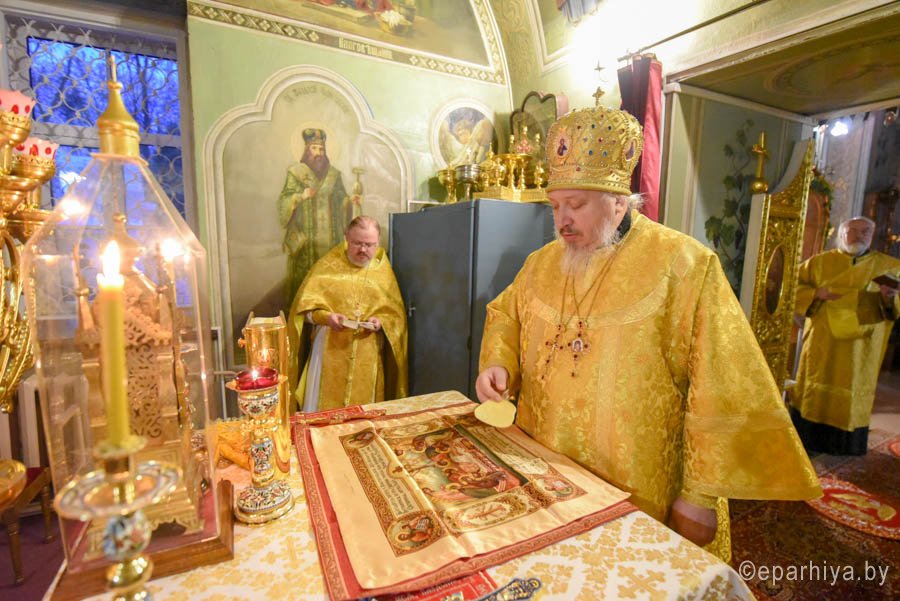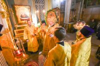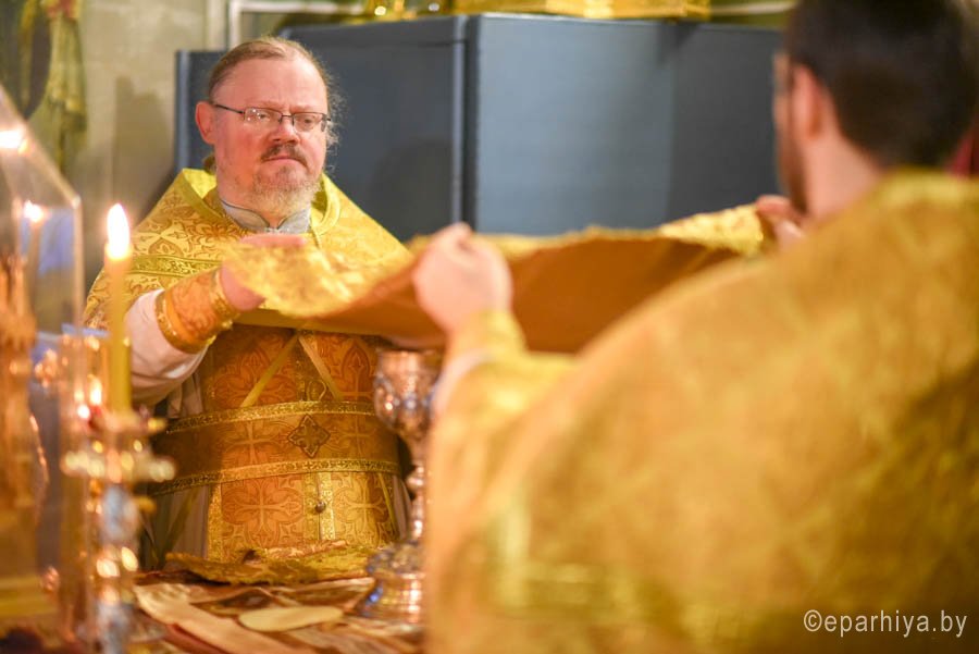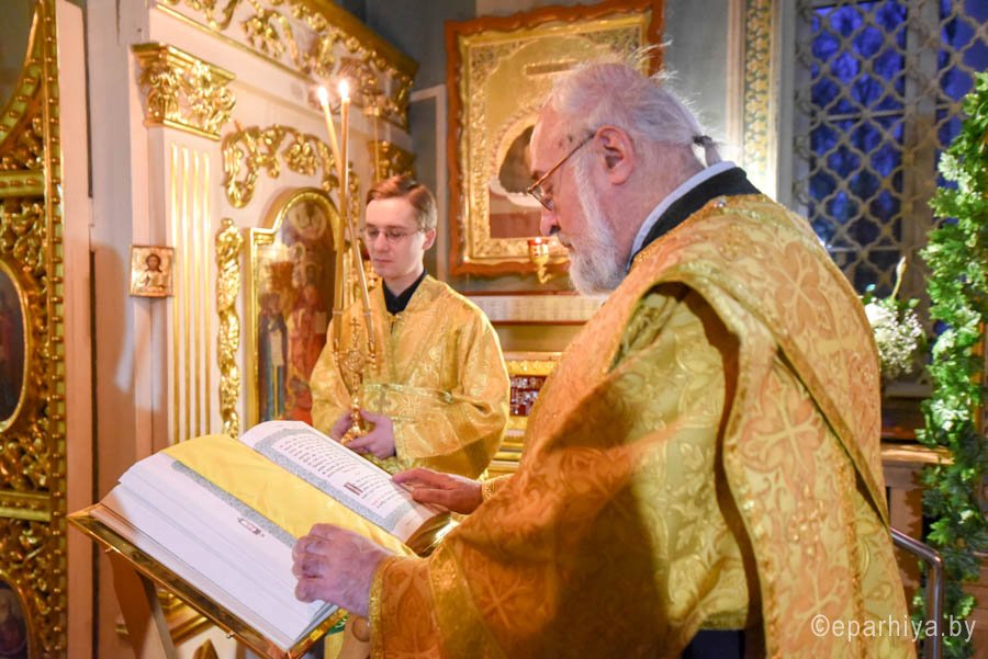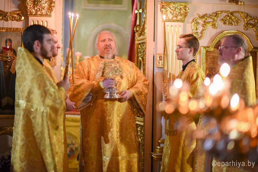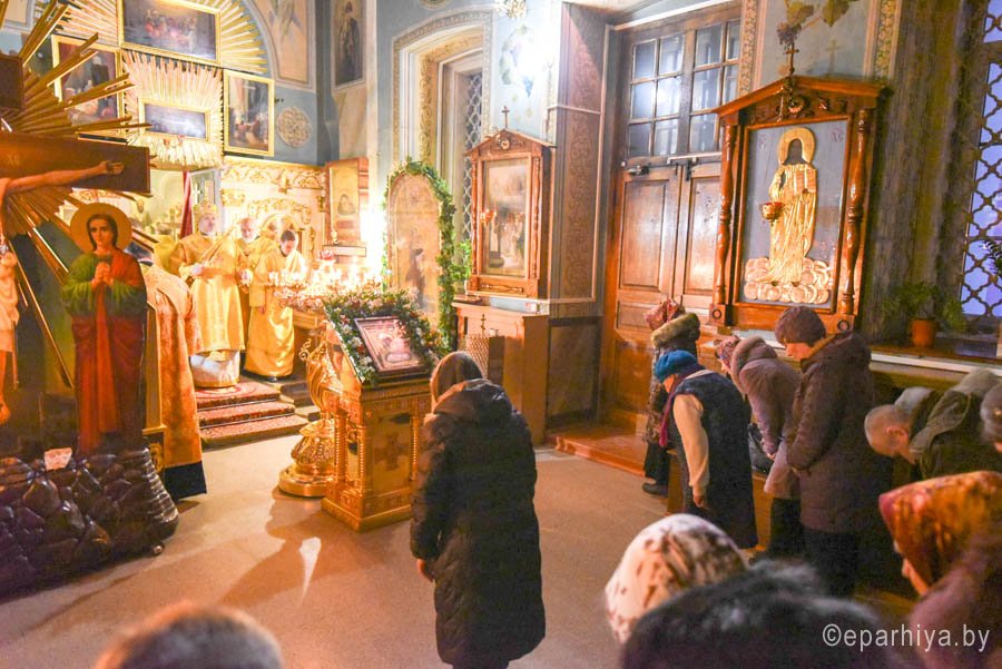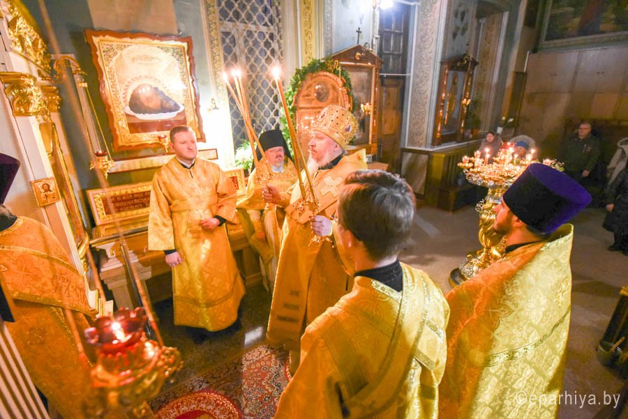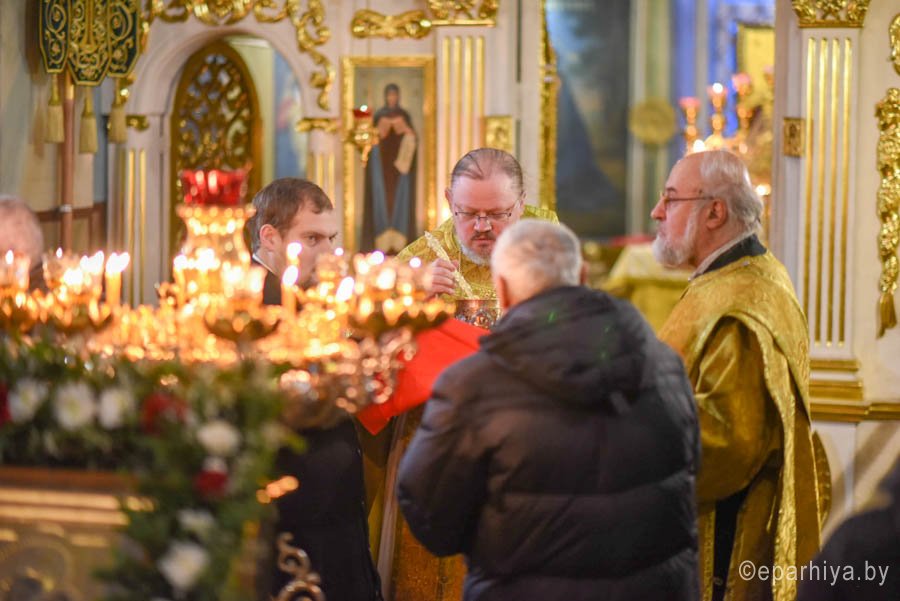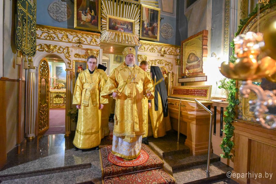 Божественную литургию в среду 33-й седмицы по Пятидесятнице 17 января 2018г. Преосвященный Стефан в сослужении духовенства собора совершил в приделе Казанской иконы Божией Матери Свято-Петро-Павловского кафедрального собора г.Гомеля. По окончании богослужения Владыка поздравил причастников с принятием Святых Христовых Таин и обратился к молящимся со словами Архипастырского назидания. |
