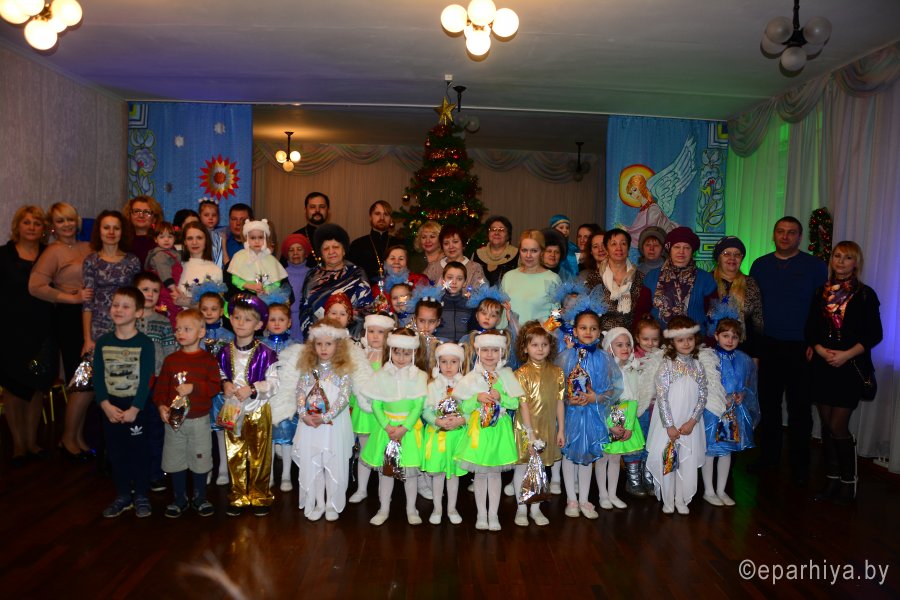 Светлый праздник Рождества Христова отметили 17 января 2018г. в ГУО «Ясли-сад №125 г.Гомеля», который на протяжении многих лет является инновационной площадкой по духовно-нравственному воспитанию на православных традициях белорусского народа. Ребята представили гостям праздника и родителям Рождественский спектакль, наполнили весь зал теплотой и радостью. На праздник были приглашены председатель отдела религиозного образования и катехизации Гомельской епархии протоиерей Артемий Кривицкий, настоятель прихода храма святого праведного Иоанна Кормянского иерей Дмитрий Жданов, координатор отдела по связям с общественностью Гомельской епархии, Н.С.Жгирова, старший преподаватель кафедры общей и коррекционной педагогики Гомельского областного института развития образования, Т.А.Хорик. По окончании праздника почётные гости посетили методический кабинет по основам православной культуры и Рождественскую выставку творческих работ, созданных руками воспитанников, родителей и сотрудников учреждений образования. Обращаясь с приветствием, протоиерей Артемий Кривицкий поздравил всех присутствующих со светлым праздником, а также поблагодарил весь коллектив сада за труды в деле воспитания подрастающего поколения на духовно-нравственных традициях белорусского народа. По окончании представления юным артистам были вручены сладкие подарки от Гомельской епархии. |