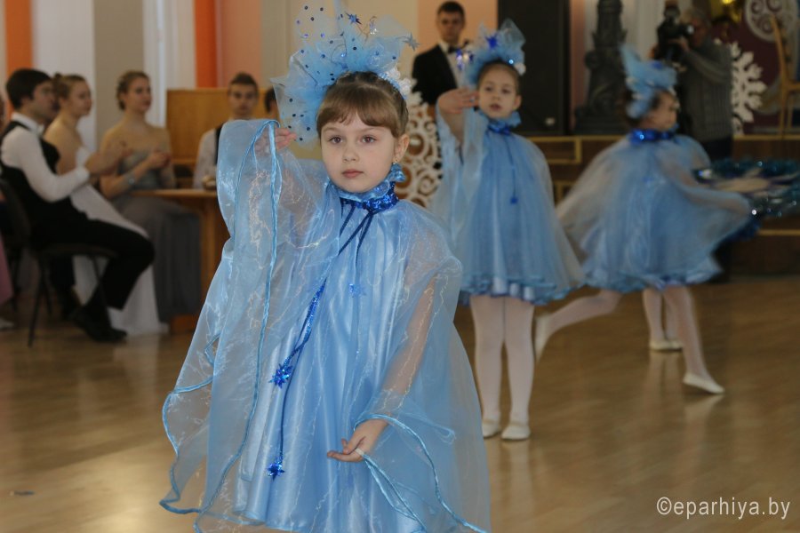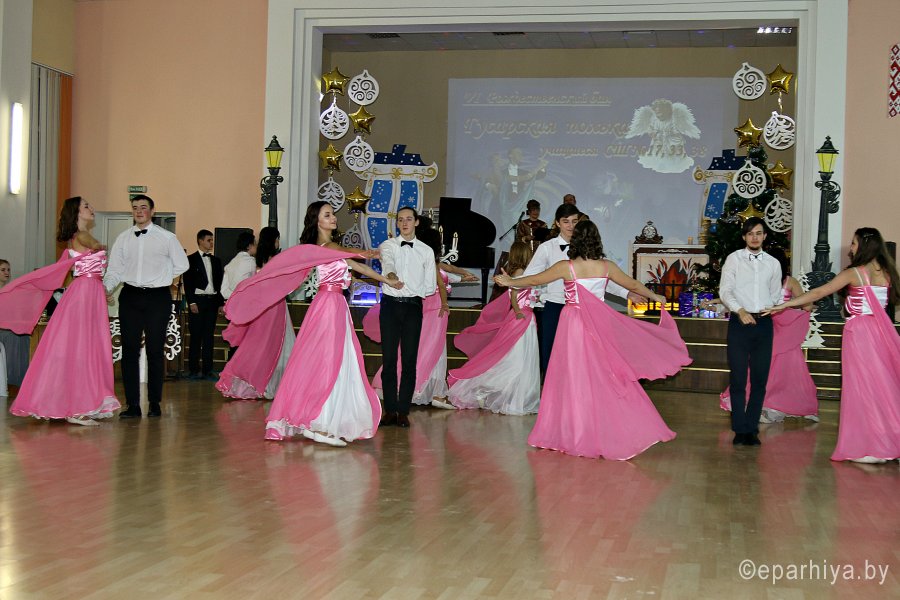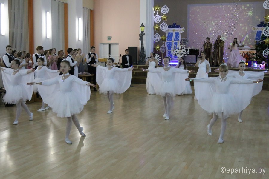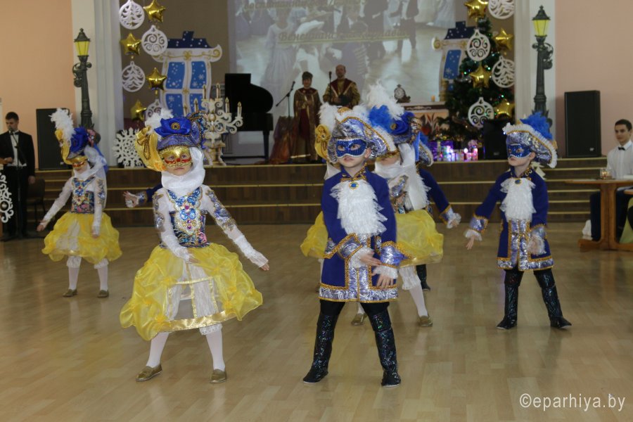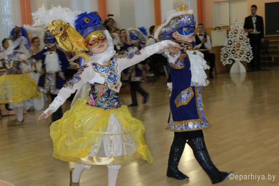 Рождественский бал среди учащихся школ и гимназий Советского района г. Гомеля состоялся 19 января в СШ №28. Юношей и девушек с праздниками Рождества Христова и Крещением Господним поздравил благочинный церквей Гомельского городского округа протоиерей Игорь Ольшанов, который пожелал ребятам, чтобы их никогда не покидали чистота, искренность и внутренняя красота. Заместитель главы районной администрации Елена Геращенко рассказала о том, что в районе сложилась традиция, и школьники собрались на рождественский бал уже в шестой раз. Полонез, вальс классический и испанский, падеграс, полька… Казалось, все участники торжества переместились в XVII век – все движения были выверены и отточены, а самые маленькие участники, воспитанники яслей-сада №33, помогли почувствовать атмосферу Венецианского карнавала. Завершился вечер награждением юношей и девушек за дела милосердия в 2017 году. |
