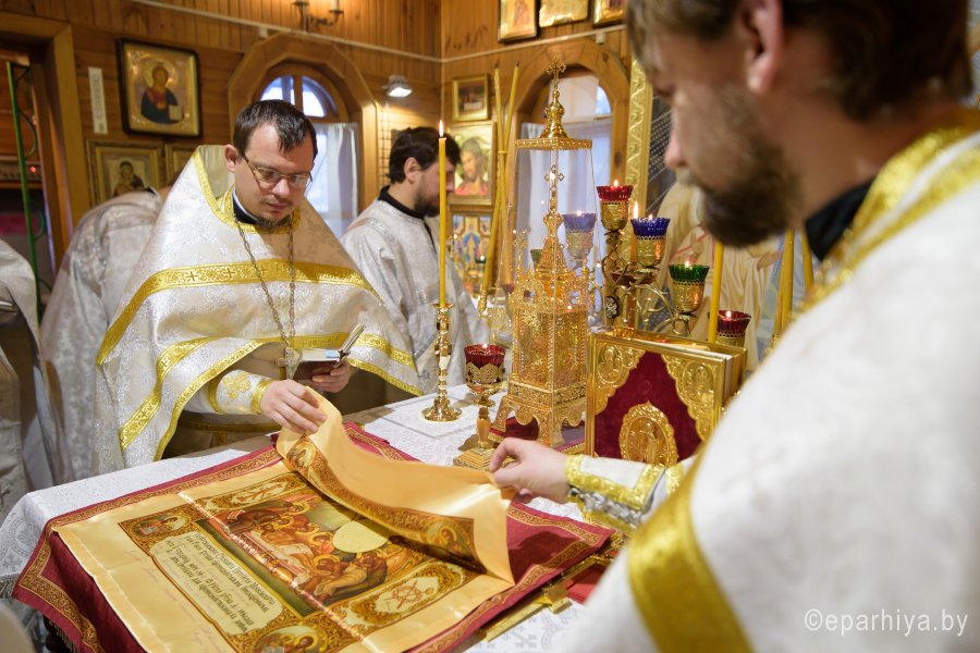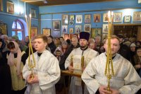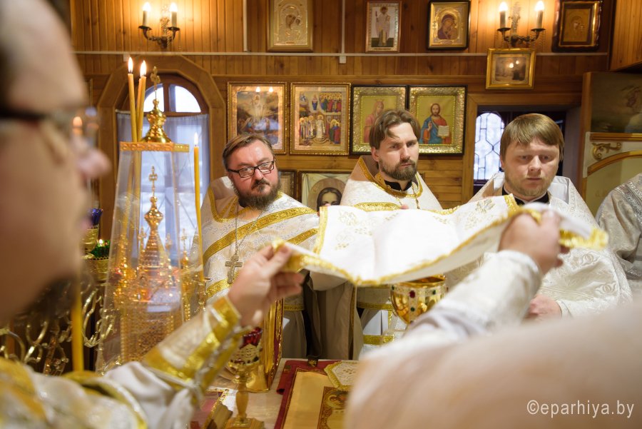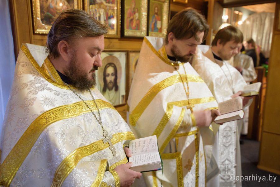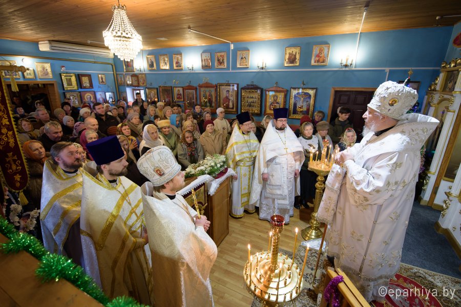 Божественную литургию в Неделю 33-ю по Пятидесятнице 21 января 2018г. Преосвященный Стефан совершил в храме Святой Живоначальной Троицы г.Гомеля. Преосвященному сослужили: секретарь Гомельской епархии протоиерей Георгий Алампиев, благочинный Гомельского городского округа протоиерей Игорь Ольшанов и духовенство храма. По окончании богослужения Владыка поздравил причастников с принятием Святых Христовых Таин и обратился к молящимся со словами Архипастырского назидания. |