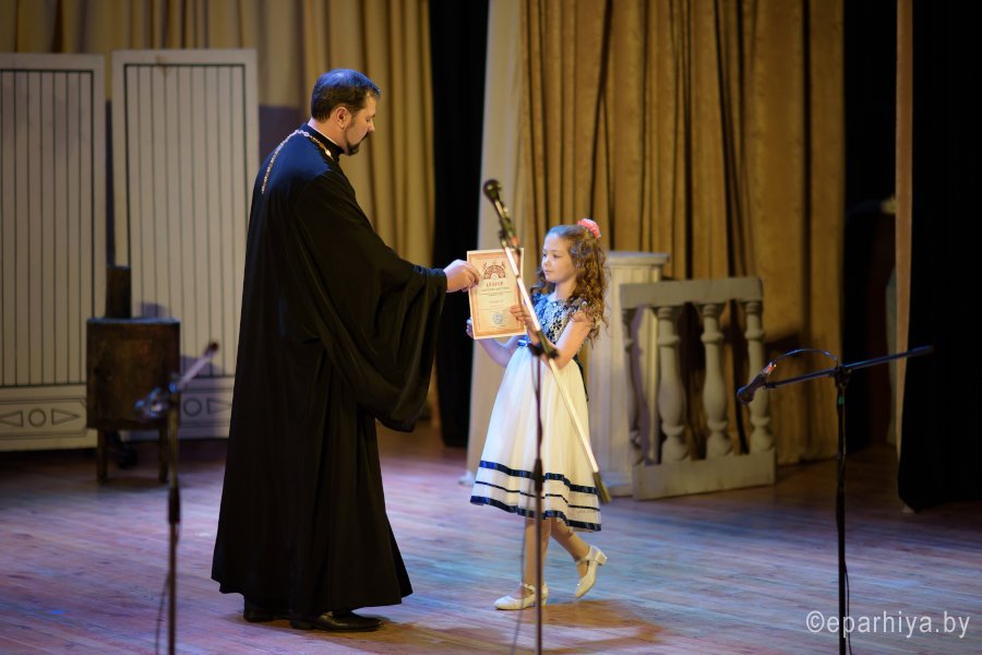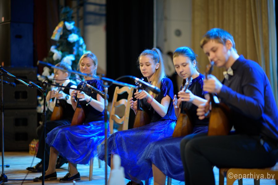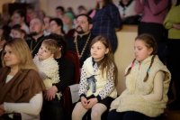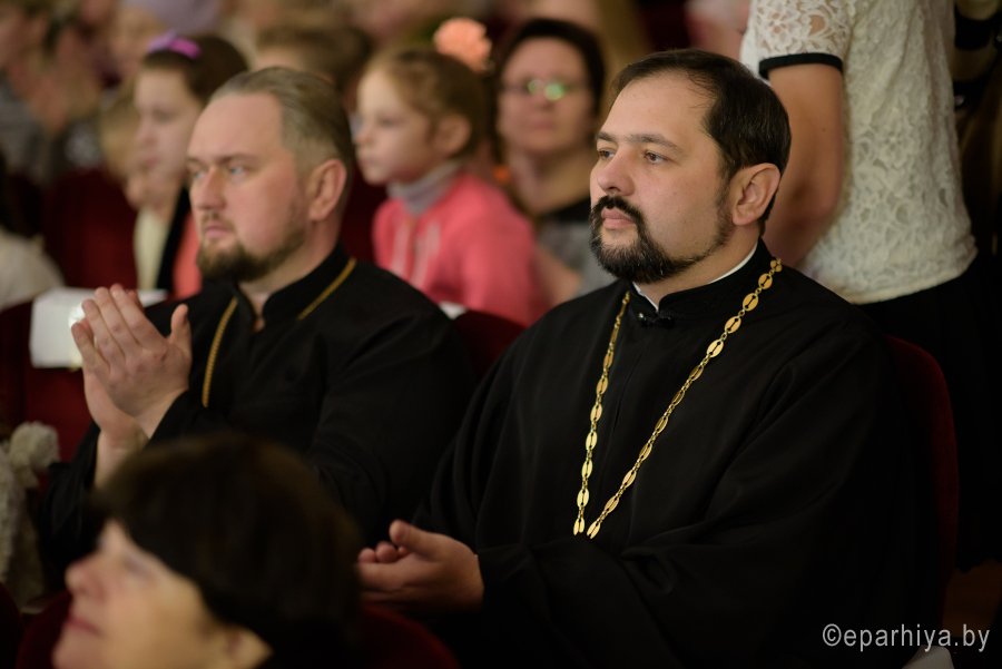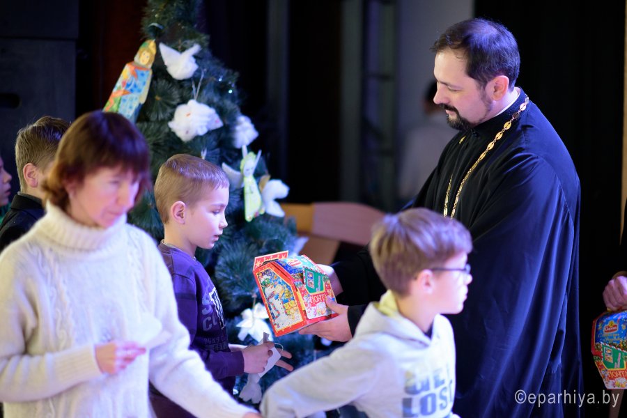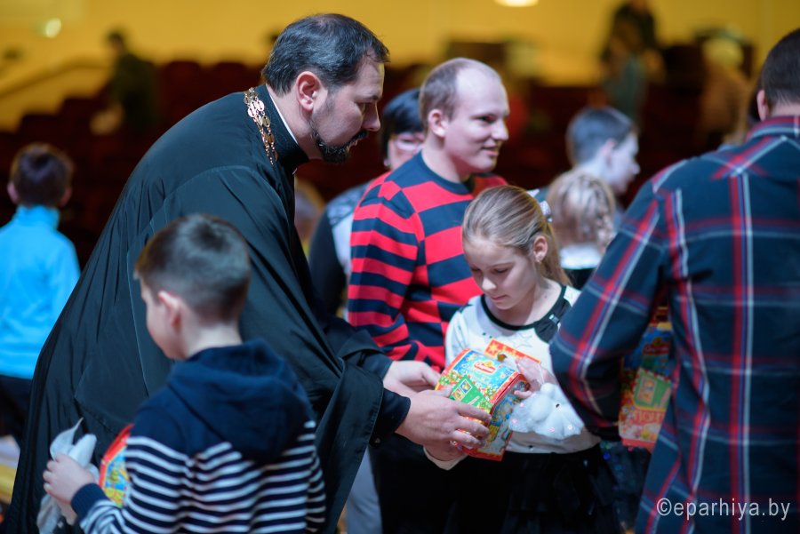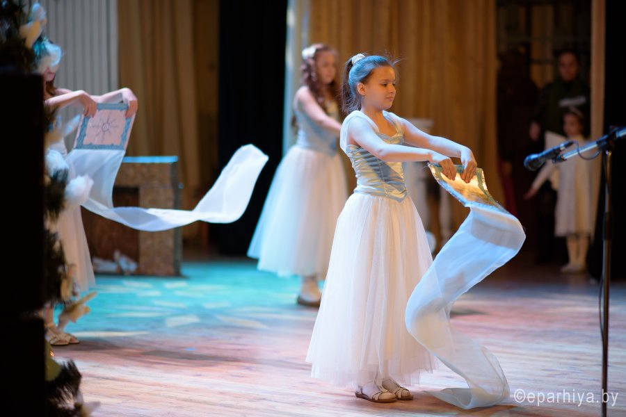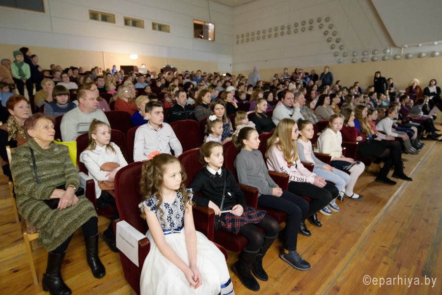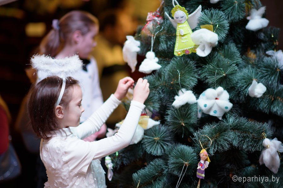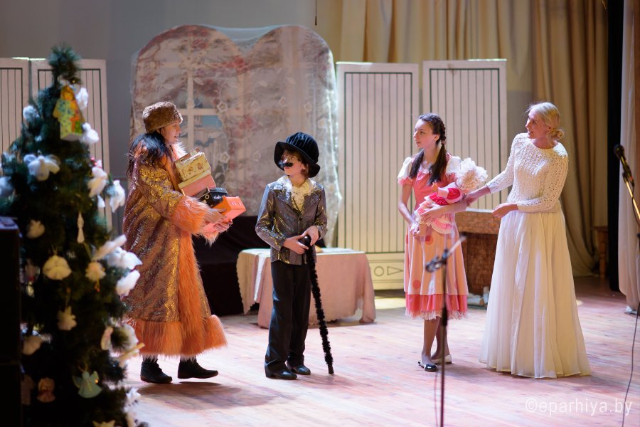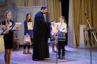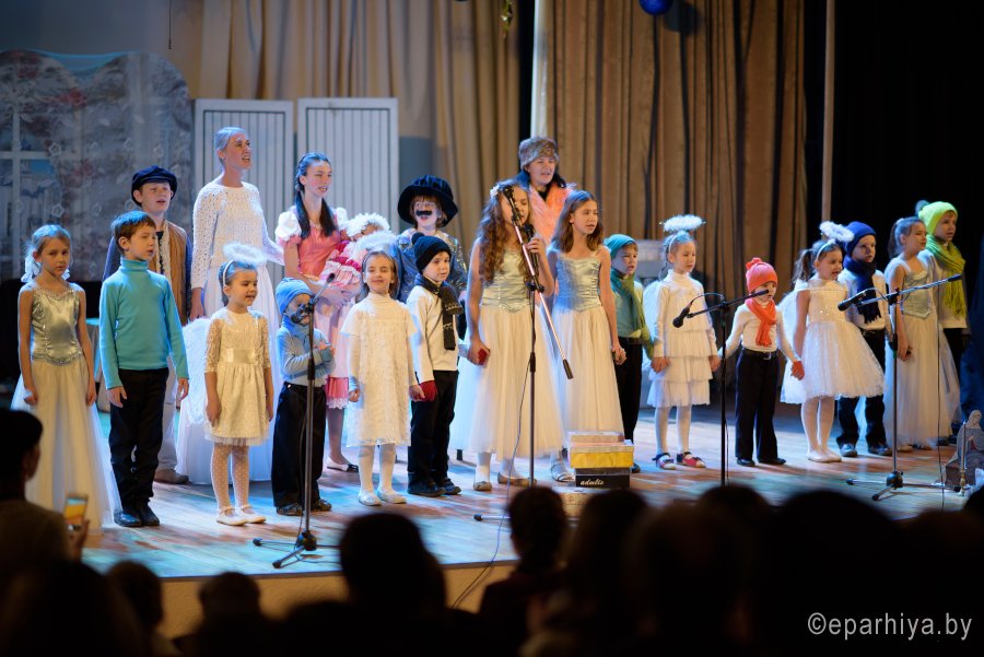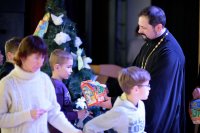 «Свет Рождественской звезды» озарил 21 января зал Гомельского государственного областного Дворца творчества детей и молодежи. В этот день свои творческие номера представили воспитанники воскресных школ Гомельской епархии и детские музыкальные коллективы города Гомеля. Среди приглашенных в зрительном зале были ребята из ассоциации семей детей-инвалидов и белорусского товарищества инвалидов по зрению. После представления их ждал небольшой сюрприз – самодельные ангелочки, которых весь Рождественский пост своими руками изготавливали воспитанники воскресных школ Гомельской епархии в рамках благотворительной акции «Ангел добра». Этими ангелочками и была украшена праздничная елка в зале. С наступившим Рождеством и Праздником Святого Богоявления всех присутствующих в зале поздравил председатель отдела религиозного образования и катехизации Гомельской епархии протоиерей Артемий Кривицкий, который также передал слова поздравления от епископа Гомельского и Жлобинского Стефана с пожеланием мира, добра, духовной радости и Божией помощи во всех благих делах и начинаниях. В рамках праздничного мероприятия состоялось награждение победителей регионального этапа Международного конкурса детского творчества «Красота Божьего мира». Данный конкурс проходил в Гомельской епархии с 14 сентября по 1 ноября среди воспитанников учреждений дошкольного образования, учащихся общеобразовательных школ, школ искусств, учреждений дополнительного образования, воспитанников воскресных школ. К награждению были представлены 32 творческие работы, часть из которых была представлена на тематической выставке в холле Дворца. Кульминацией праздника стало музыкально-театрализованное представления «Кукла Рождественской девочки», поставленного стараниями педагогов, родителей и воспитанников воскресной школы прихода храма Иверской иконы Божией Матери в г.Гомеле, совместно с молодежной группой. История девочки Жени, которая, желая помочь больной маме, хочет продать самую дорогую для сердца вещь – любимую куклу, показывает, как важно быть добрым и отзывчивым. И что внимание, сострадание и участие друг к другу могут стать чудом, пусть тихим и незаметным, но меняющим нас и окружающий мир. Зрители очень тепло благодарили артистов за их выступления и созданное праздничное настроение. Каждому пришедшему на представление маленькому зрителю и артисту достался сладкий подарок от Гомельской епархии. |