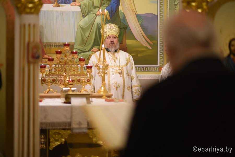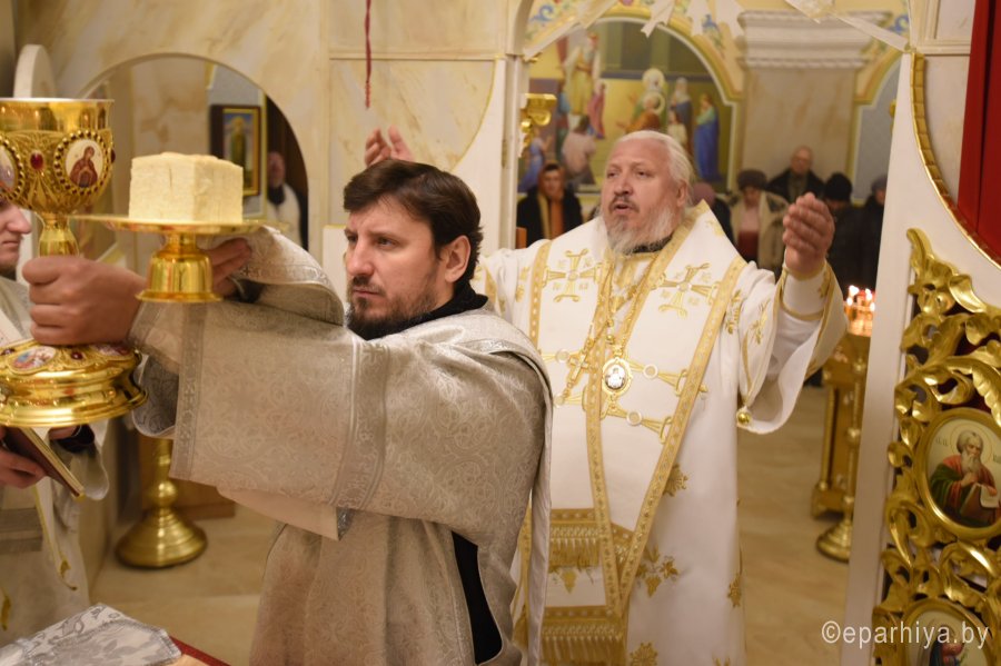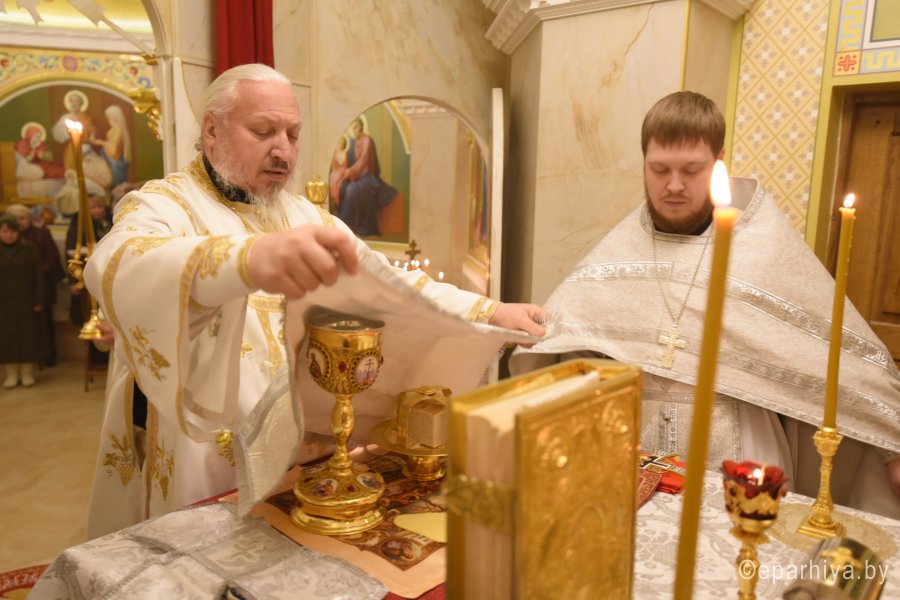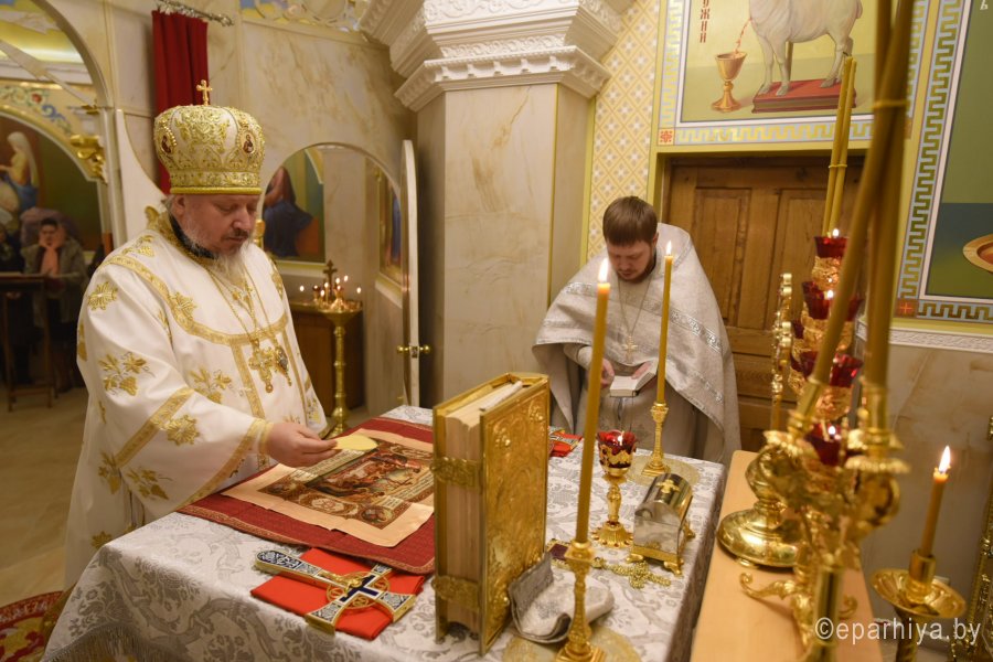 Божественную литургию в день попразднства Богоявления 23 января 2018г. Преосвященный Стефан в сослужении духовенства собора, совершил в крестильном храме Свято-Петро-Павловском кафедральном соборе г. Гомеля. По окончании богослужения Владыка поздравил причастников с принятием Святых Христовых Таин и обратился к молящимся со словами Архипастырского назидания. |