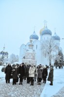 Гомельская делегация, принимающая участие в работе XXVI Международных Рождественских образовательных чтений совершили паломническую поездку в крупнейший мужской монастырь Русской Православной Церкви с многовековой историей - Троице-Сергиеву лавру, который расположен в центре города Сергиев Посада. В Свято-Троицком соборе лавры паломники имели возможность преклониться к мощам преподобного Сергия Радонежского и к другим Святыням, находящимся в соборе. Обитель Живоначальной Троицы основана прп. Сергием Радонежским в 1337 г. на холме Маковец в 70 км к северо-востоку от Москвы. На протяжении столетий Троице-Сергиева лавра является одной из самых почитаемых общерусских святынь, крупнейшим центром духовного просвещения и культуры. В ее стенах подвизался сонм подвижников Русской Православной Церкви, в их числе прп. Никон Радонежский, прп. Максим Грек, духовные писатели прп. Епифаний Премудрый и Пахомий Логофет. Священноархимандритами Лавры были святители Московские Филарет (Дроздов; †1867) и Иннокентий (Вениаминов; †1879), а также сщмч. Владимир (Богоявленский; †1918). |