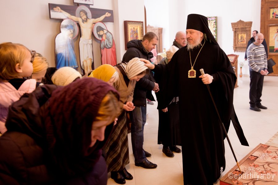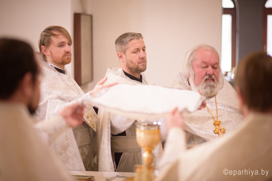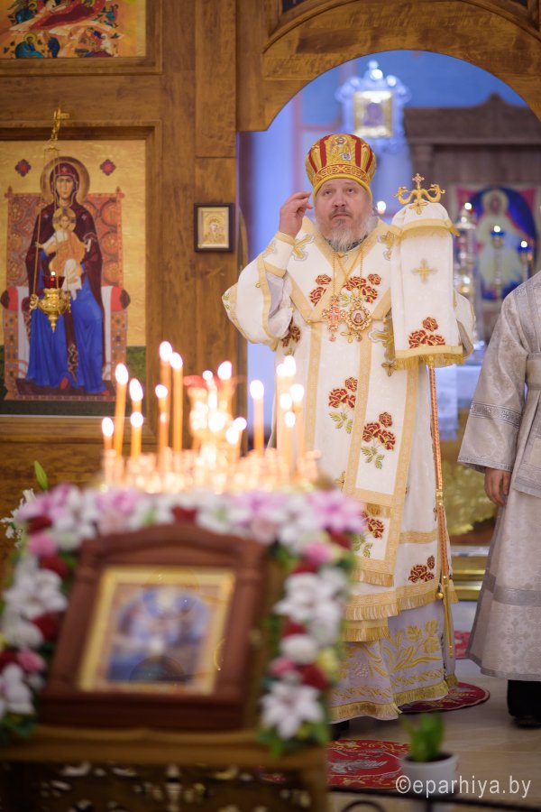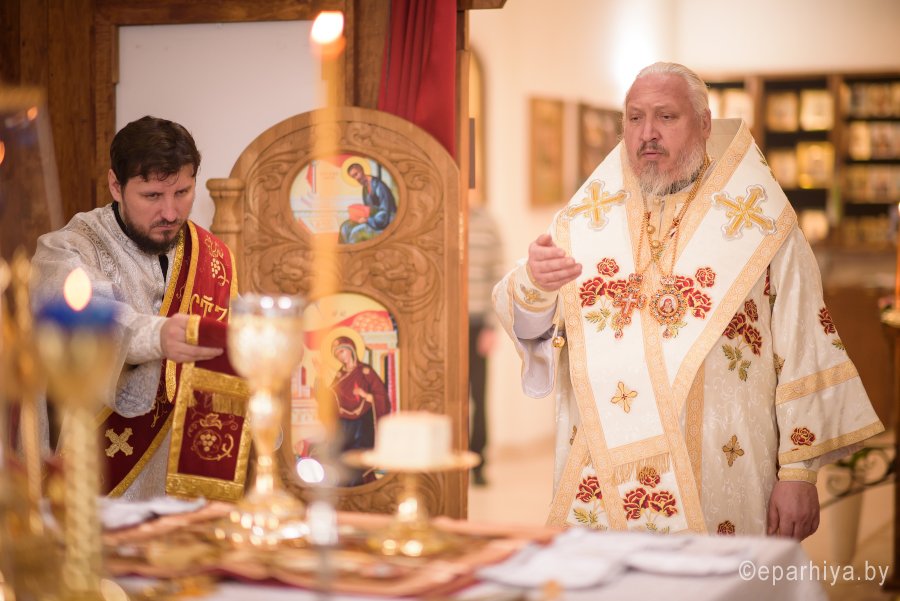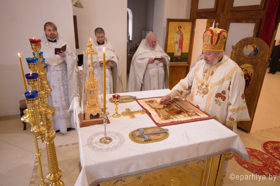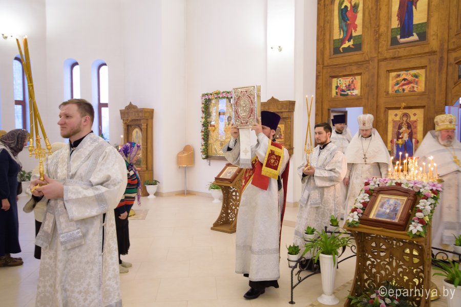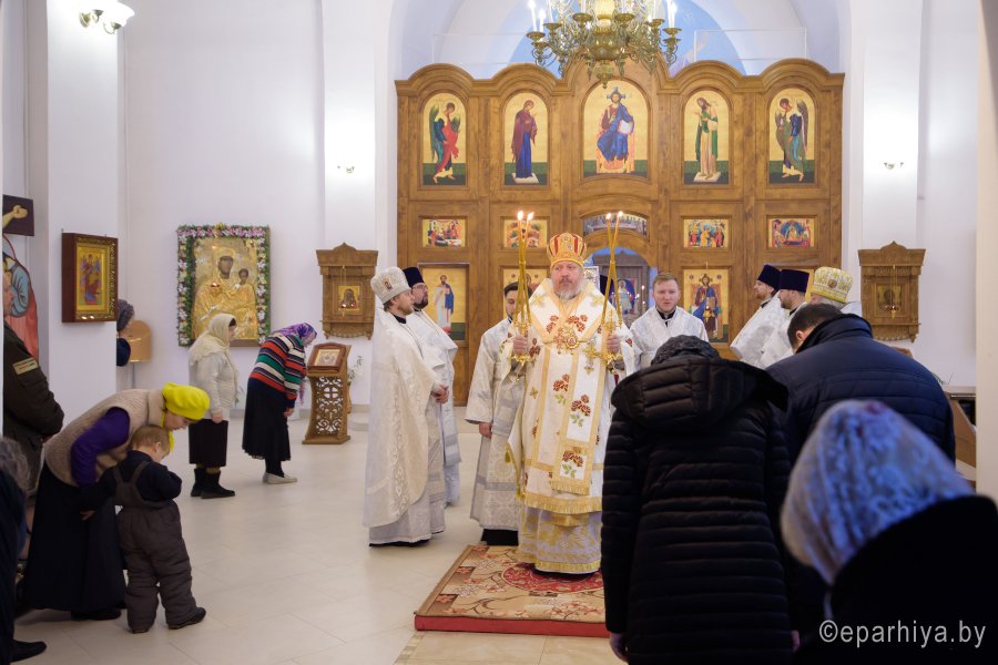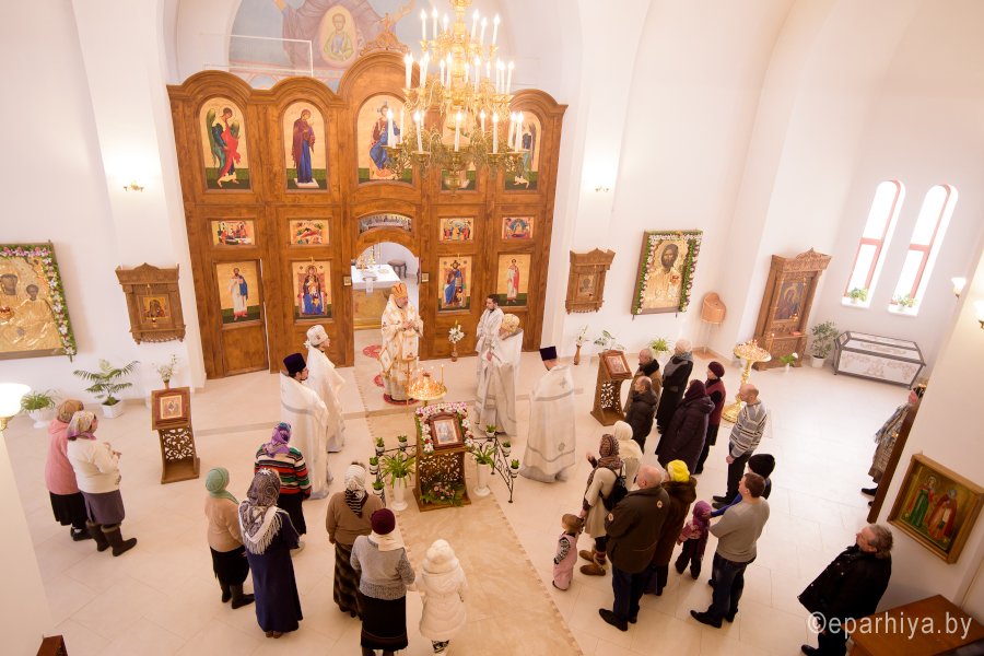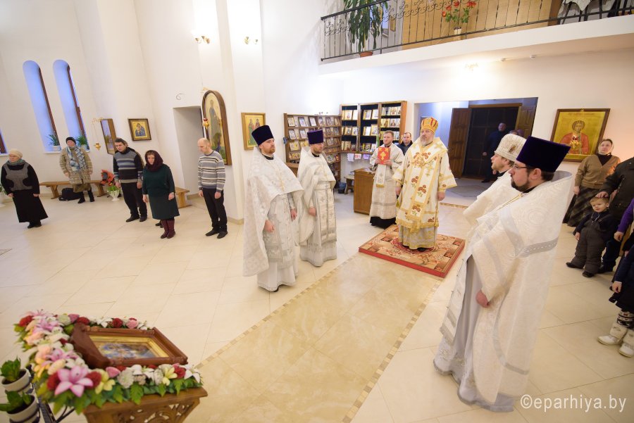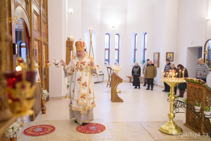 Божественную литургию в день памяти мученицы Татианы 25 января 2018г. Преосвященный Стефан совершил в храме Грузинской иконы Божией Матери в г.Гомеле. Преосвященному сослужили: секретарь Гомельской епархии протоиерей Георгий Алампиев, председатель отдела по архитектуре и строительству Гомельской епархии протоиерей Георгий Тур, эконом Гомельской епархии протоиерей Владимир Масалитин, благочинный Гомельского городского округа протоиерей Игорь Ольшанов и духовенство епархии. По окончании богослужения Владыка поздравил причастников с принятием Святых Христовых Таин и обратился к молящимся со словами Архипастырского назидания. |