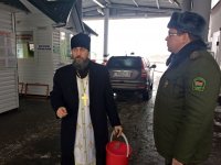 7-ю пограничную заставу «Круговец-Калинино» в/ч 1242 Гомельской пограничной группы посетил 19 января 2018 года настоятель храма Святителя Николая Чудотворца а/г Ленино протоиерей Василий Грек, где провёл беседу с военнослужащими о празднике Богоявления. По окончании беседы священнослужитель совершил чин освящения заставы. Также священнослужитель посетил таможенный пункт пропуска «Веселовка». Там он продолжил общение с пограничниками. Крещенские встречи пограничников со священнослужителями становятся в благочинии ежегодными и приобретают традиционный характер. |