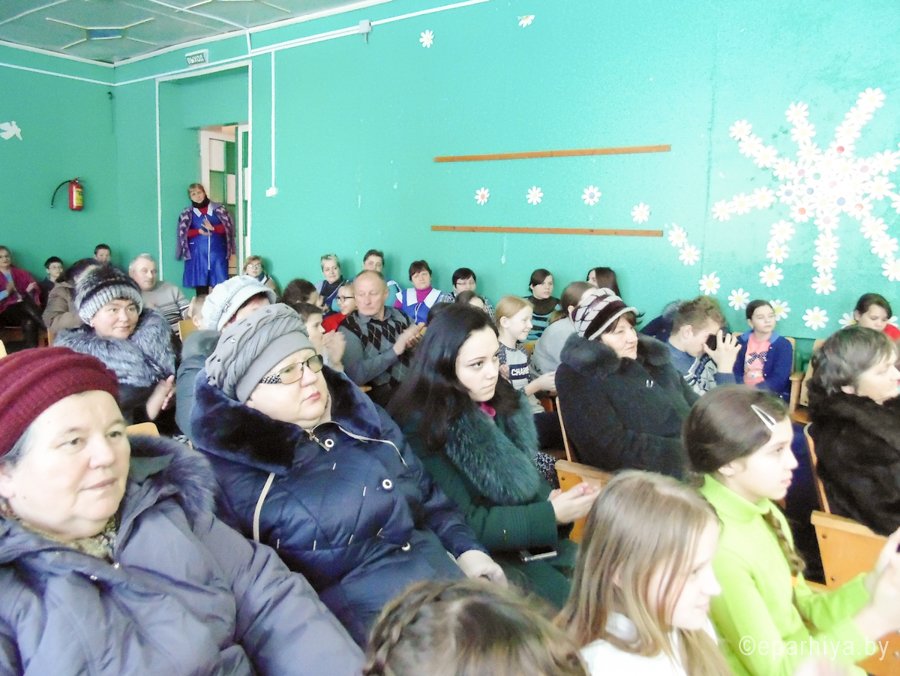 Праздничный концерт в честь дня памяти святой мученицы Татианы состоялся 25 января 2018 года в актовом зале ГУО «Васильевский детский сад-базовая школа». Идея провести концерт в родном агрогородке принадлежала председателю Добрушской первичной организации ОО «БелТИЗ» Дриневской В.М.. На специально организованном транспорте, предоставленном районным ТСОН, привезли к месту проведения праздника незрячих и слабовидящих жителей района, пригласили односельчан. Зал наполнился звонкими песнями под баян. Поздравить участников и гостей со святым днём пришел настоятель храма Святой Живоначальной Троицы аг. Крупец иерей Виталий Дерели. Он пожелал собравшимся подражать в добродетели святой мученице Татьяне, в терпении и прежде всего - в любви к ближним и к Богу. |