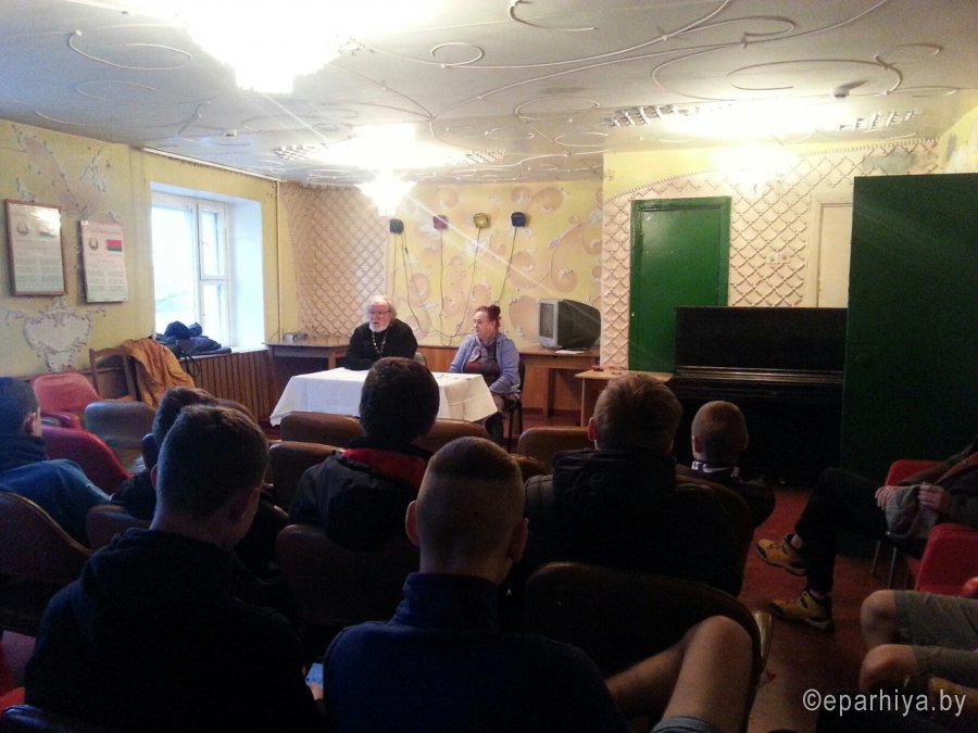 Встреча с учащимися учреждения образования "Гомельский государственный автомеханический колледж" с клириком прихода храма прп.Серафима Саровского протоиереем Анатолием Федотовым состоялась 31 января 2018 г. Вопросы, которые поднимал священнослужитель, касались смысла жизни, семейных ценностей, устройства мира. Многообразие рассматриваемых тем сделало беседу длительной и очень насыщенной. По окончании мероприятия протоиерей Анатолий Федотов ответил на все заданные вопросы и не оставил неразъясненной ни одну из обсуждаемых тем. |