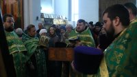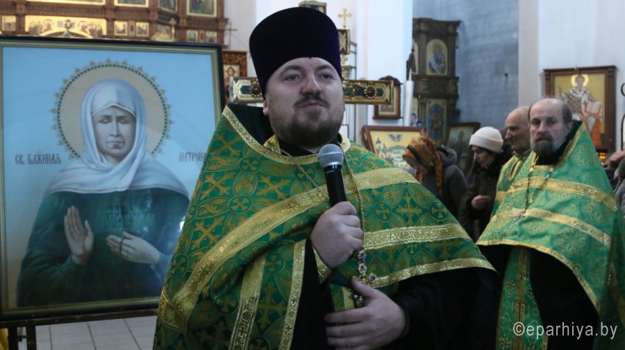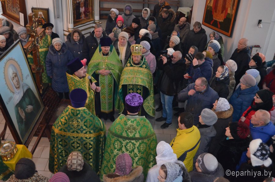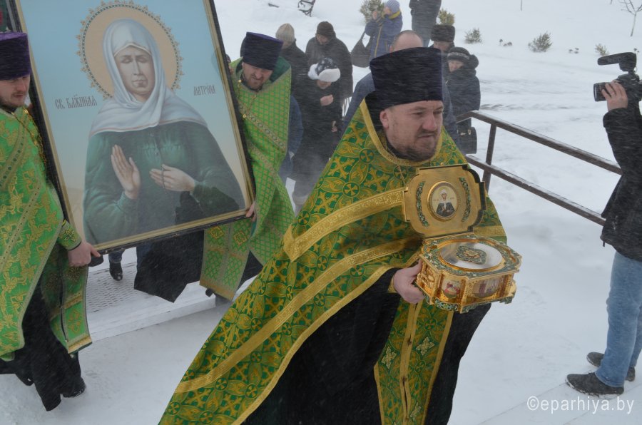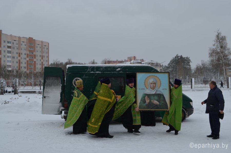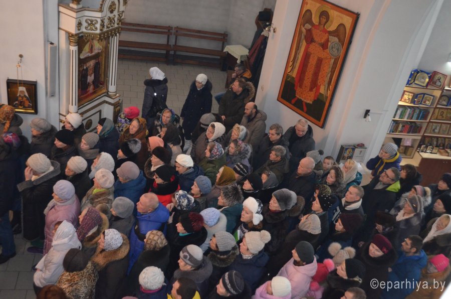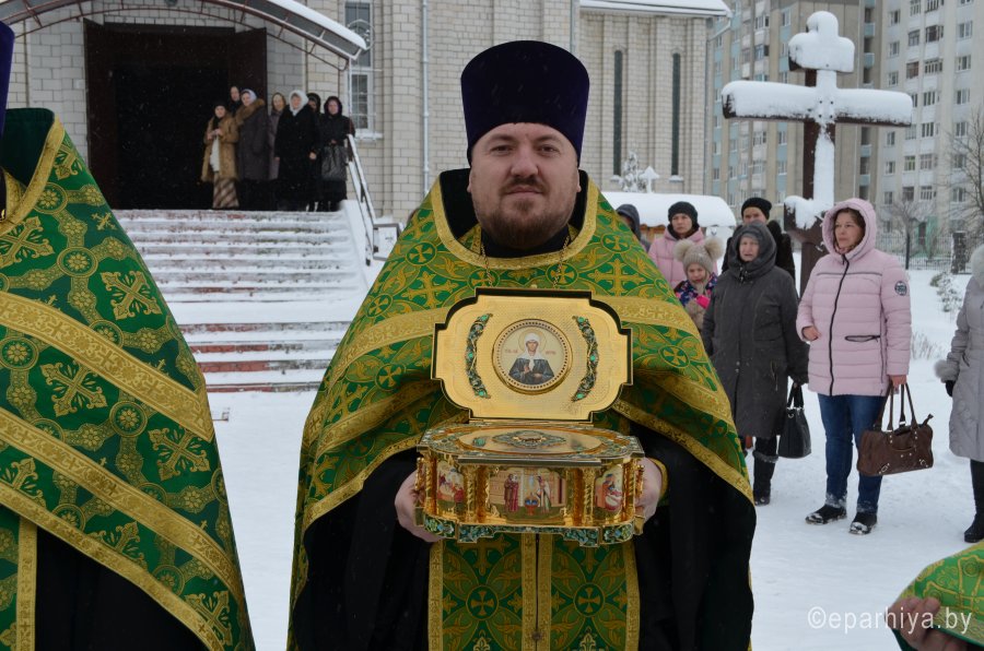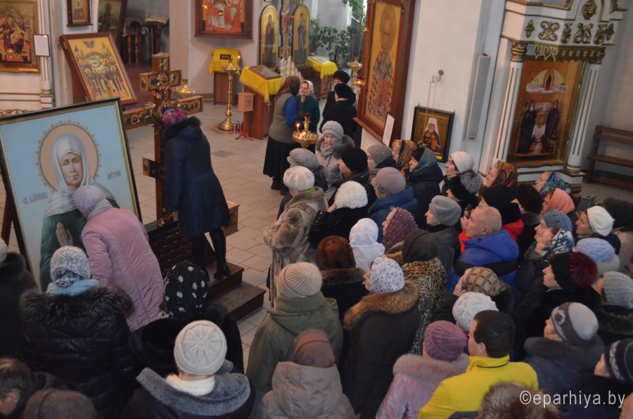Более 200 жителей города Светлогорск торжественно встретили святыни христианского мира - частицу Ризы Господней в кресте-мощевике и ковчег с мощами святой блаженной Матроны Московской в храме Преображения Господня, которые были доставлены по благословению Высокопреосвященнейшего Стефана архиепископа Гомельского и Жлобинского 4 февраля 2018г. Благочинный Светлогорского округа протоиерей Александр Кисель в сослужении духовенства Светлогорского округа совершил акафист святой праведной блаженной Матроне Московской. В завершении богослужения настоятель храма протоиерей Александр Кисель поздравил жителей города с важным событием для Светлогорщины и обратился к прихожанам с проповедью. Святыни будут доступны для верующих с 4 февраля по 11 февраля в храме Преображения Господня г. Светлогорска, а с 11 февраля по 18 февраля в храме свт. Кирилла Туровского. Ежедневно у мощей будут совершаться молебны и акафисты с помазанием. |