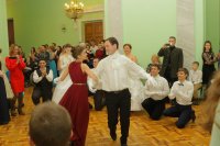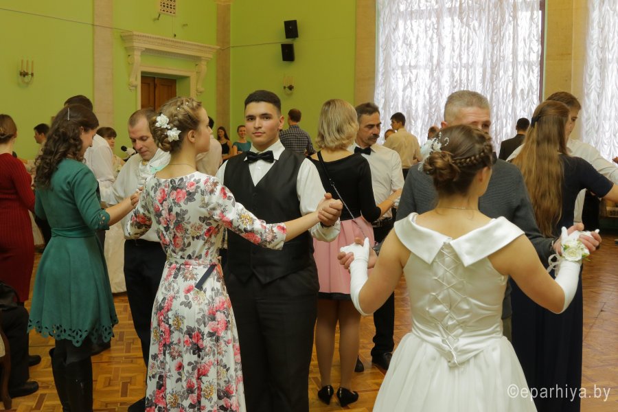 «Бал верности, любви и чести» состоялся 4 февраля в Гомельском областном драматическом театре. Организаторы мероприятия, посвященного возрождению в общественном сознании высоких нравственных идеалов - участники студии исторического бального танца, действующей при духовно-просветительском центре прихода храма иконы Божией Матери «Всех скорбящих Радость». В этот день гостями бала стали воспитанники и выпускники Воскресной школы прихода, их родители и друзья, представители молодежных братств приходов города Гомеля, отделения дневного пребывания инвалидов центра социального обслуживания населения Советского района. Приветственным словом открывая праздник грации и красоты, настоятель прихода храма иконы Божией Матери «Всех скорбящих Радость» протоиерей Вадим Кочан пожелал всем радости общения, напомнив собравшимся о том, что танец – это музыка души и в своем высшем выражении есть отражение высокой внутренней гармонии человека. Сценарий бала был построен таким образом, чтобы каждый приглашенный имел возможность стать его непосредственным участником. В программе были предусмотрены, как показательные танцы, так и обучающие мастер классы. Праздничную атмосферу дополняли шуточные конкурсы и возможность для всех желающих провести фото-сессию. Всего в мероприятии приняло участие более 200 человек. |