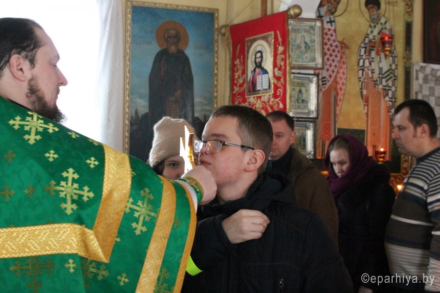 В день памяти блаженных Ксении Петербургской и Валентины Минской 6 февраля традиционно в храме святителя Василия Великого в г.Жлобине молились ребята из отделения дневного пребывания инвалидов при территориальном центре социального обслуживания населения Жлобинского района. Сестры милосердия из сестричества при храме, которые постоянно посещают отделение, заботятся о том, чтобы молодые люди регулярно приобщались Святых Христовых Таин в храме. За время общения с сестрами и священником ребята научились благоговейно вести себя в церкви, молиться со всеми прихожанами "едиными усты и единым сердцем". В день почитания святых жен, принявших на себя подвиг юродства, ребята исповедовались и причастились за Божественной Литургией. Вместе со своими родными и воспитателями они молитвенно обращались ко Господу Иисусу Христу за помощью и заступлением по молитвам святых блаженных Ксении Петербургской и Валентины Минской. А по окончании богослужения ребята получили сладкие подарки, подготовленные заботливыми руками сестер милосердия. |