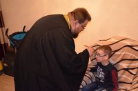 Ковчег с мощами святой блаженной Матроны Московской был доставлен на дом к детям-инвалидам, которые не могут самостоятельно посещать храм, по благословению Высокопреосвященнейшего Стефана, архиепископа Гомельского и Жлобинского и благочинного Светлогорского округа протоиерея Александра Киселя 7 февраля 2018 г. Клирик прихода храма Преображения Господня в г.Светлогорске иерей Евгений Новик совершил молебен святой блаженной Матроне Московской, рассказал о святых мощах, о трудном жизненном пути святой праведницы, пожелал ребятам укрепления здоровья, послушания, а их родителям – терпения в несении своего жизненного креста. |