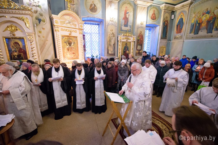 В канун Вселенской родительской субботы 9 февраля 2018г., Высокопреосвященейший Стефан, архиепископ Гомельский и Жлобинский возглавил вечернее богослужение и совершил Парастас (заупокойную утреню) в Свято-Петро-Павловском кафедральном соборе г.Гомеля. По окончании богослужения Владыка обратился к духовенству и прихожанам собора со словами Архипастырского назидания. Парастас или Великая панихида – заупокойная Всенощная – последование великой панихиды по всем усопшим православным христианам, совершаемое на Всенощном бдении родительских суббот (служится вечером в пятницу). |