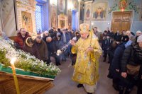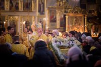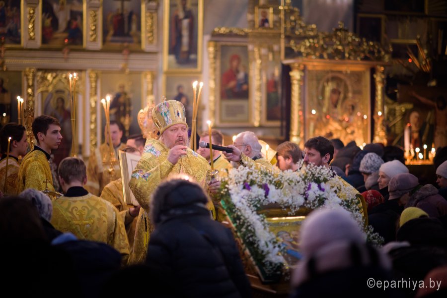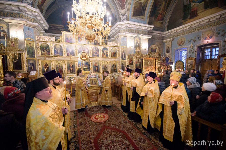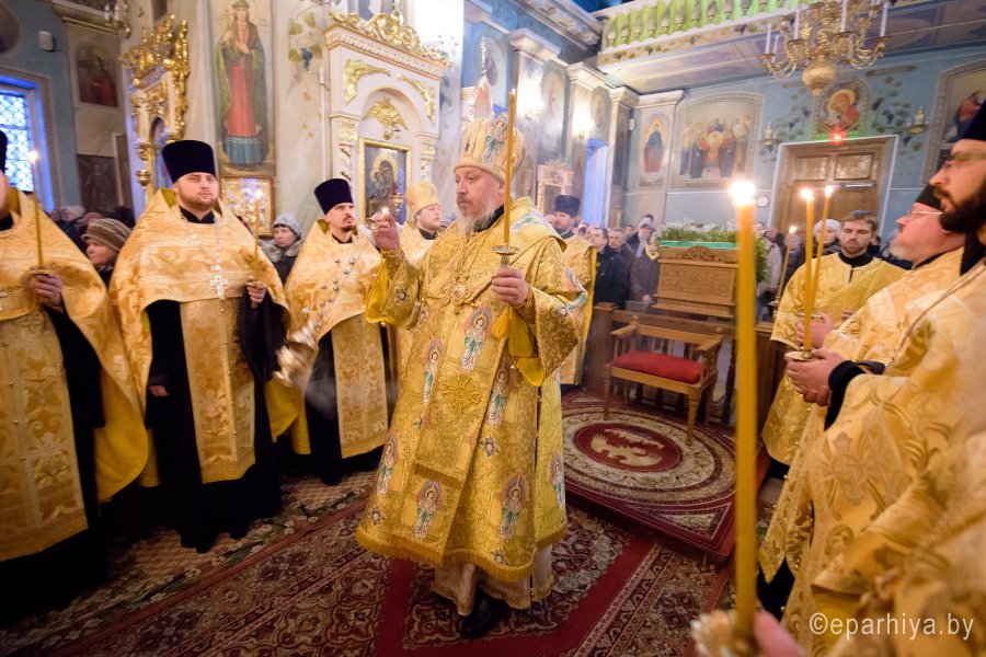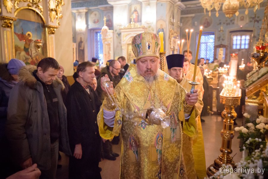 Всенощное бдение в канун Недели мясопустной, о Страшном Суде 10 февраля 2018г. Высокопреосвященнейший Стефан, архиепископ Гомельский и Жлобинский в сослужении секретаря Гомельской епархии протоиерея Георгия Алампиева и духовенства собора совершил в Свято-Петро-Павловском кафедральном соборе г.Гомеля. По окончании богослужения Владыка обратился к молящимся со словами Архипастырского назидания. |