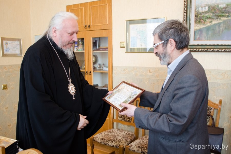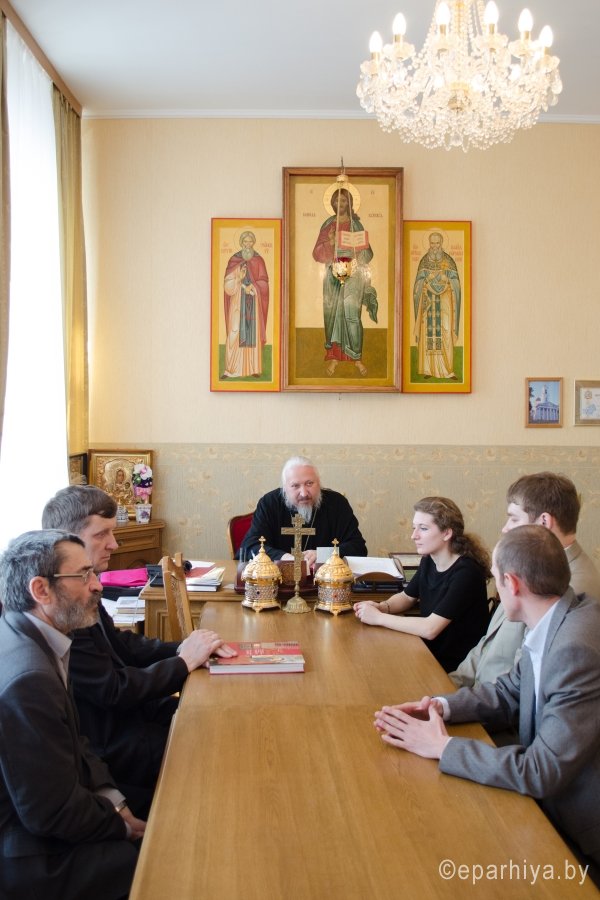 26 марта в Гомельском епархиальном управлении Преосвященный Стефан, епископ Гомельский и Жлобинский, вручил свидетельства стипендиатов Архиерейской стипендии и Архиерейской премии студентам и преподавателям Исторического факультета УО «Гомельский государственный университет им. Франциска Скорины». В 19 декабря 2015 года на заседании Совета исторического факультета университета имени Франциска Скорины были определены кандидаты на присуждение Архиерейской преподавательской премии. Её лауреатами стали В.П. Пичуков и А.Д.Лебедев за цикл научных работ, посвященных истории Православной Церкви и культуры Беларуси и успешное руководство научно-исследовательской работой студентов по данному направлению. По итогам учебного 2014 года лауреатами Архиерейской стипендии Гомельской епархии стали: студент 5-го курса Кулакевич Владислав за исследовательскую работу "Коллекция рукописной и старопечатной книги в музеях Беларуси" и студентка 3-го курса Певнева Наталья за цикл исследовательских работ, посвященных памятникам духовно-исторического наследия Киевской Руси. Преподаватели, лауреаты Архиерейской премии, и Архиерейские стипендиаты, ознакомили Владыку Стефана не только с тематикой и проблематикой их научных изысканий, но и перспективами дальнейшего изучения и популяризации истории Православия на Гомельщине, влияния Православной Церкви на становление культуры, ментальности и исторического своеобразия Беларуси. Высоко оценив вклад и стремление молодых ученых и преподавателей в деле развития национальной гуманитарной науки, Правящий архиерей от себя лично вручил всем присутствовавшим, памятные подарки. В свою очередь декан исторического факультета Мезга Николай Николаевич, поблагодарив Правящего архиерея за неизменное внимание Православной Церкви к развитию гуманитарной науки и содействие в деле активизации исследовательской работы студентов, от имени руководства и студентов УО «Гомельский государственный университет им. Франциска Скорины» преподнес Владыке на долгую и добрую память альбом «Памятники художественной культуры Беларуси». Напомним, что в рамках договора о сотрудничестве между Гомельской епархией и ГГУ им. Ф. Скорины 10 января 2014 года было подписано «Положение о порядке назначения и выплаты Архиерейской премии, утвержденной Гомельской епархией Белорусской Православной Церкви преподавателям исторического факультета УО «Гомельский государственный университет им. Ф. Скорины» и «Положение о порядке назначения и выплаты Архиерейской стипендии, утвержденной Гомельской епархией студентам исторического факультета УО «Гомельский государственный университет им. Ф. Скорины». |