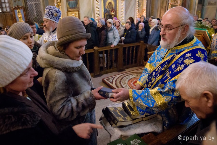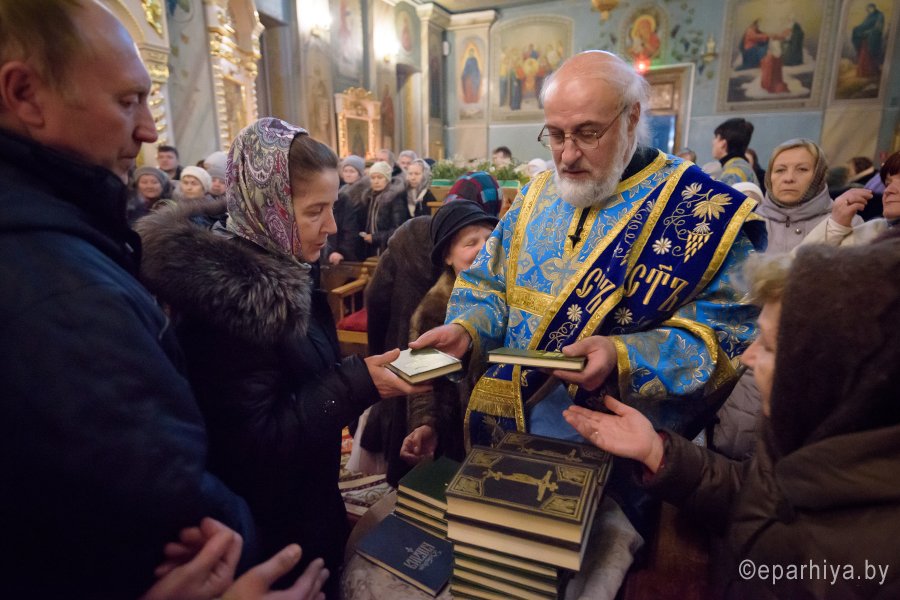 Праздник Сретение — этот день когда православные христиане вспоминают события, описанные в Евангелии от Луки, – встречу младенца Иисуса со старцем Симеоном в Иерусалимском храме на сороковой день после Рождества. В канун праздника, 14 февраля 2018г. Высокопреосвященнейший Стефан, архиепископ Гомельский и Жлобинский, возглавил всенощное бдение в Свято-Петро-Павловском кафедральном соборе г.Гомеля. Преосвященному сослужили: секретарь Гомельской епархии протоиерей Георгий Алампиев и духовенство собора. За богослужением Владыка совершил чин освящения свечей. Прихожан собора в этот день ждала особая встреча с Богом. По благословению Владыки каждый получил в память об этом дне, символ приближающегося Дня Православной книги – Святое Писание. Прихожане с удовольствием брали книги и для многих Евангелие является самым желанным и дорогим подарком. Это единственная книга, которую всегда читаешь по-новому, каждый раз рождаются новые мысли и появляются новые ответы. Акция продолжится в сам день праздника 15 февраля 2018г. в Свято-Петро-Павловском кафедральном соборе. Ребята из молодежного братства собора подарят каждому от Владыки Евангелие, а маленьким прихожанам детскую библию. |
