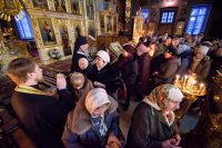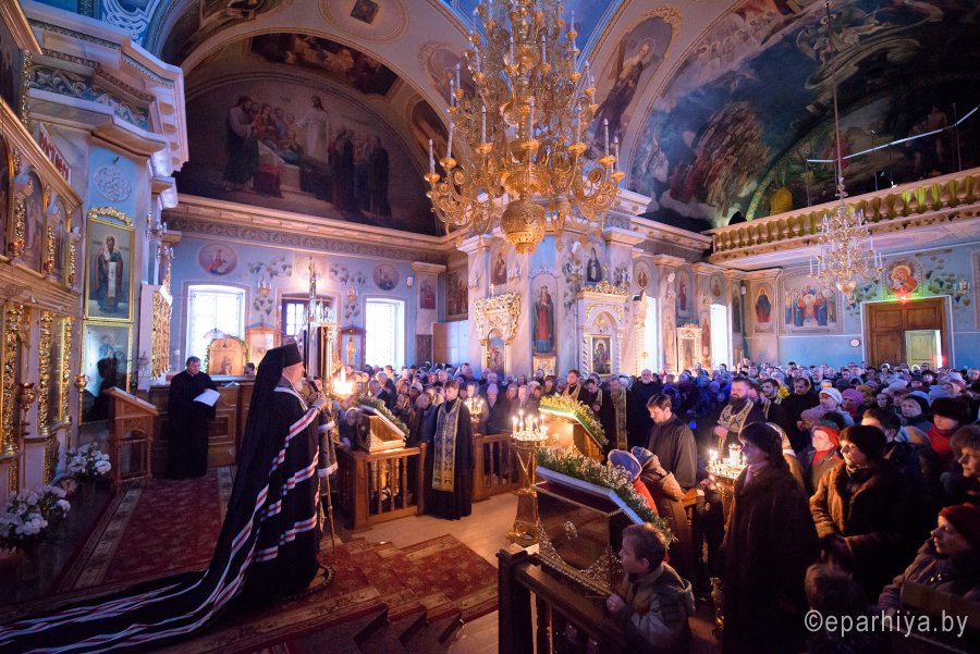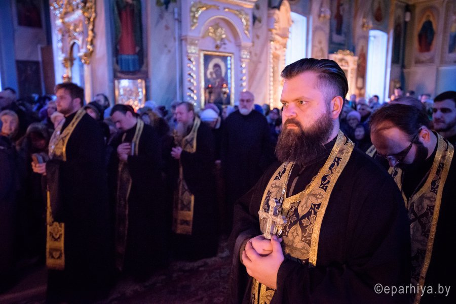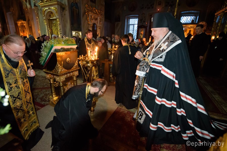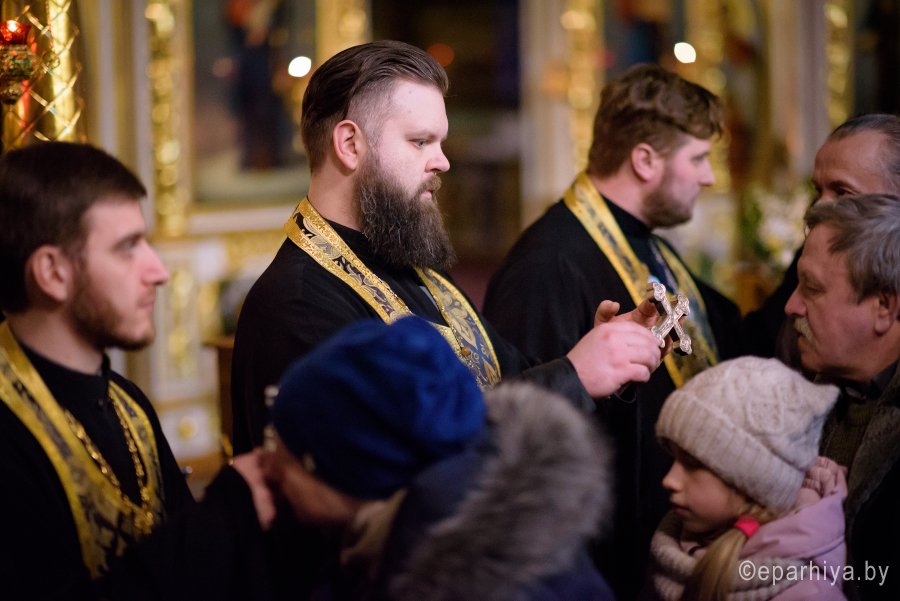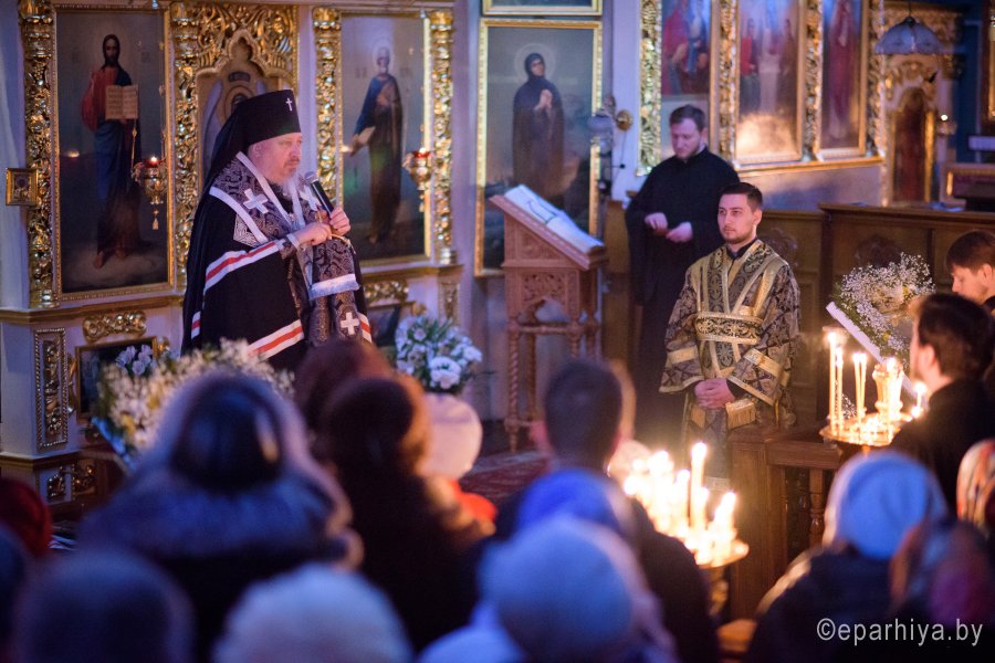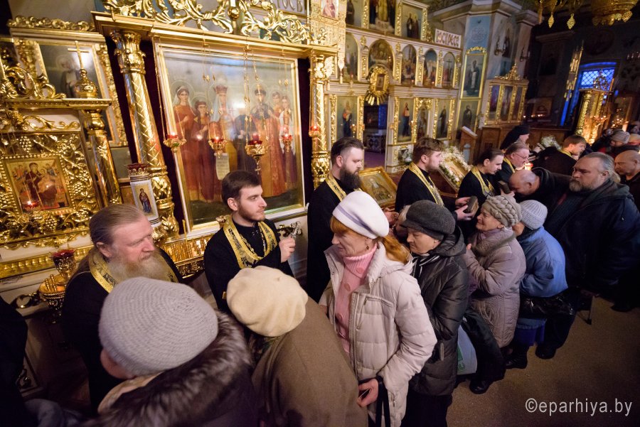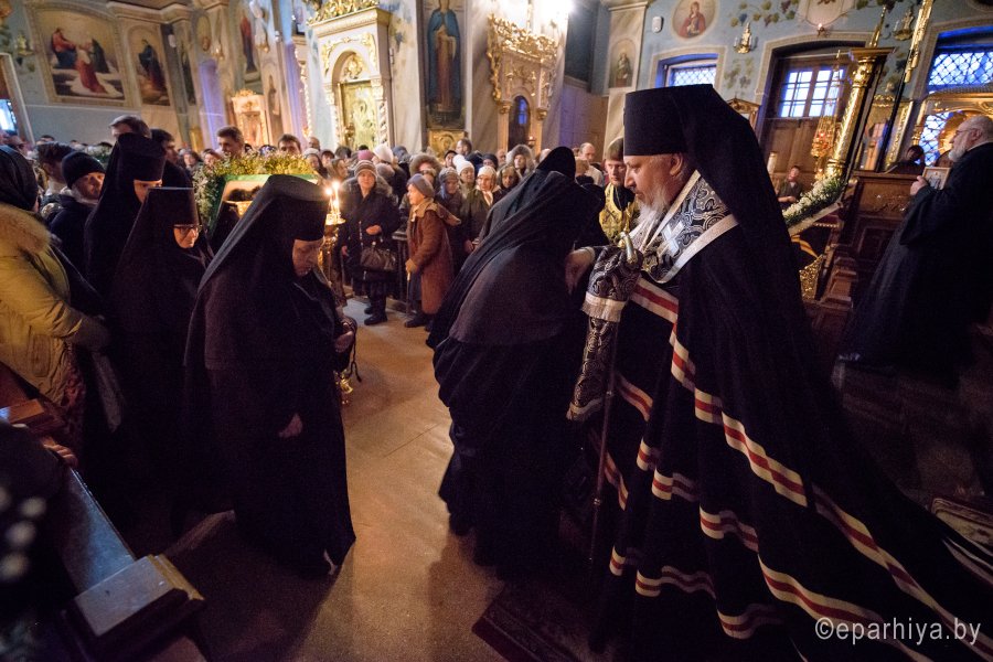 В Прощеное воскресенье Церковь дает наставления верующим как правильно вести себя во время Великого поста и призывает прихожан покаяться друг перед другом во всех обидах и грехах, помириться и простить все накопившееся. При этом священнослужители сами подают добрый пример и первыми просят у своей паствы прощения. Вечерню с чином Прощения 18 февраля 2018г. Высокопреосвященнейший Стефан в сослужении секретаря Гомельской епархии протоиерея Георгий Алампиева и духовенства собора совершил в Свято-Петро-Павловском кафедральном соборе г.Гомеля. Владыка прочитал молитвы на начало поста - святой Четыредесятницы, испрашивая благословение и помощь Божию на прохождение спасительного пути поста и молитвы. За богослужением молились сестры Свято-Иоанно-Кормянского женского монастыря аг.Корма. |