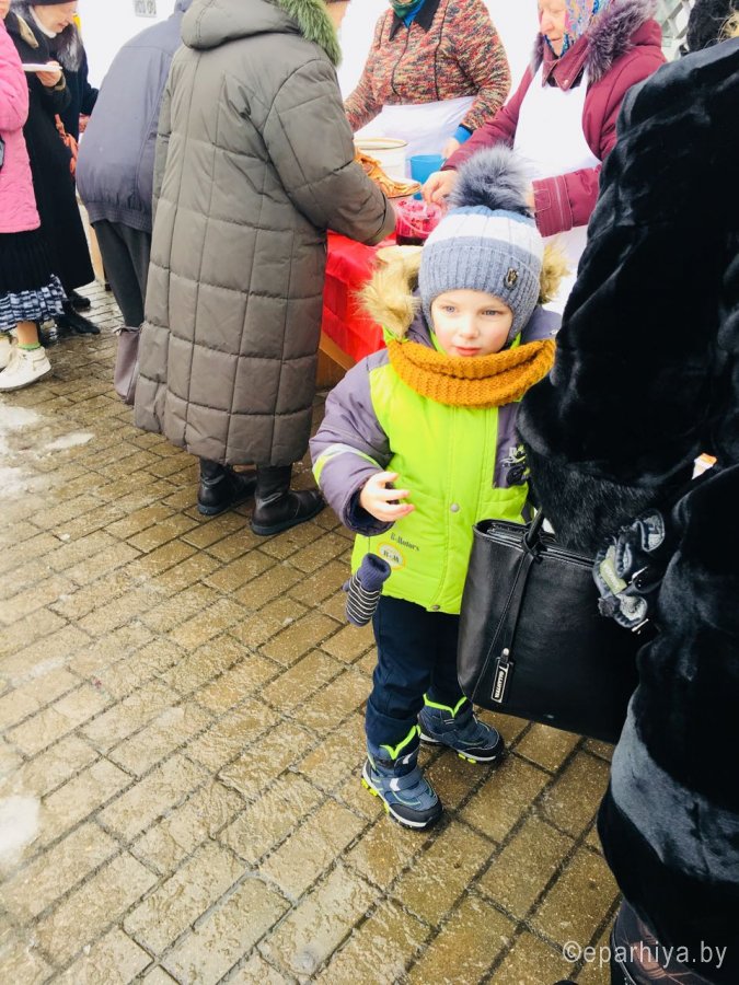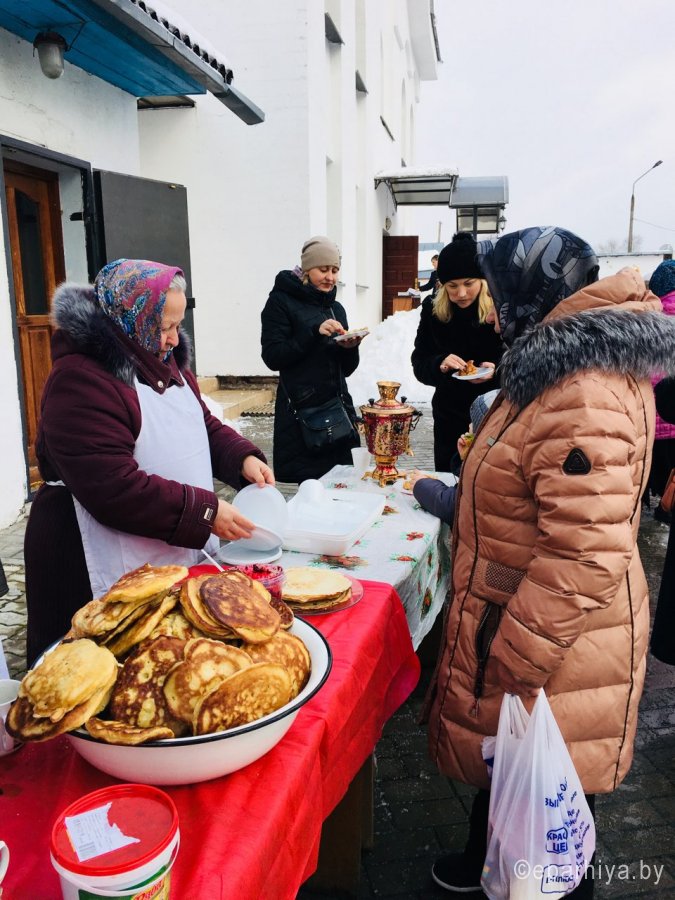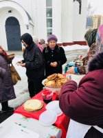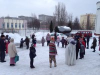 Яркое, красочное объявление на дверях храма Иверской иконы Божьей Матери о праздновании Прощеного воскресенья, последнего дня перед Великим постом, 18 февраля, в воскресенье, привлекло многих жителей микрорайона. Здесь их ожидали весёлые масленичные песни и стихи, весёлые скоморохи-зазывалы, традиционные персонажи: Зима, Весна, Масленица, закружившие в весёлых хороводах и играх как детей, так и взрослых. А под конец представления появилась злая Обида, которая хотела изгнать любовь из сердец, не дать возможности простить друг друга перед Великим постом. А добрая румяная Масленица пригласила всех к столу, где ждало угощение из горячих вкусных блинов со сметаной и сгущёнкой и сладким чаем, заботливо приготовленным прихожанами нашего храма. Незаметно пролетело время в играх, состязаниях, хороводах. А перед тем, как разойтись по домам, гости сердечно поблагодарили всех исполнителей и участников праздника. |