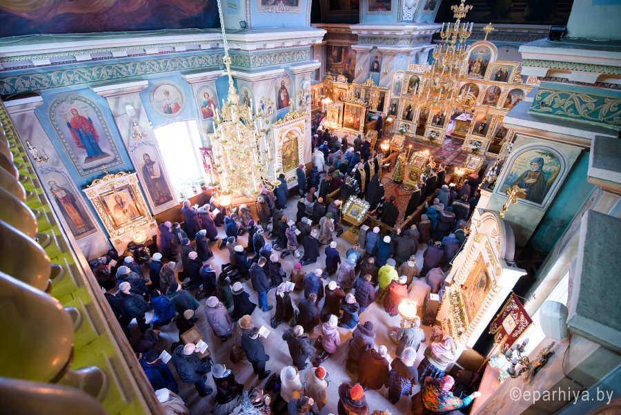 Великое повечерие с чтением Великого канона преподобного Андрея Критского вечером 19 февраля 2018г. Высокопреосвященнейший Стефан, архиепископ Гомельский и Жлобинский совершил в Свято-Петро-Павловском кафедральном соборе г.Гомеля. Преосвященному сослужили: секретарь Гомельской епархии протоиерей Георгий Алампиев и духовенство собора. По окончании богослужения Владыка обратился к молящимся со словами Архипастырского назидания. Во время чтения Великого канона мы слышим множество имен, известных и не очень: Адам, Ева, Авель, Каин, Ламех, Хам, Давид, Соломон и т.д. Все это – реальные герои Священного писания, история жизни которых нам здесь приоткрывается. Но не это – главное. Праотеческий чин из церкви Иоанна Златоуста в Коровниках, Ярославль, 1654 год. Фото с сайта skyscrapercity.com «Ключ» к пониманию канона Андрея Критского в том, чтобы в библейских героях, в их падениях и подвигах увидеть свое падение и возможность восстания. Святой Андрей рассказывает историю мира, отпавшего и возвращающегося к Богу, которая в то же время есть история души каждого из нас. Потому что каждая душа проходит тем же путем испытаний, стоит перед тем же выбором. Но как же увидеть в героях Библии – самого себя? Вот мы читаем в самом начале Канона: «Вместо Евы чувственный мысленная ми бысть Ева, во плоти страстный помысл, показуяй сладкая и вкушаяй присно горькаго напоения». («Вместо чувственной Евы восстала во мне Ева мысленная — страстный помысел, обольщающий приятным, но при вкушении всегда напояющий горечью»). Что все это значит? Пример Евы увлек Адама к греху. Так же каждого из нас влечет к греху мысленная ева – страстный, грешный помысел. Пока страсть у человека не удовлетворена, он страдает, мучается. С удовлетворением страсти он надеется получить удовольствие, избавление от мучений. Это и обещает душе страстный помысел, толкая ее на грех, как когда-то толкнул он на грех нашу праматерь Еву. Но как Ева обманулась в надежде получить блаженство от запретного плода, так обманывается в своих расчетах человек, мечтающий найти в грехе сладость. |