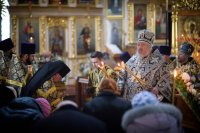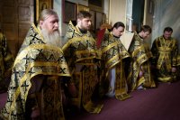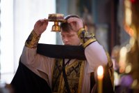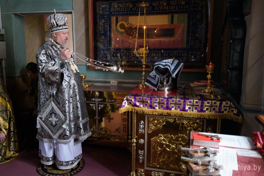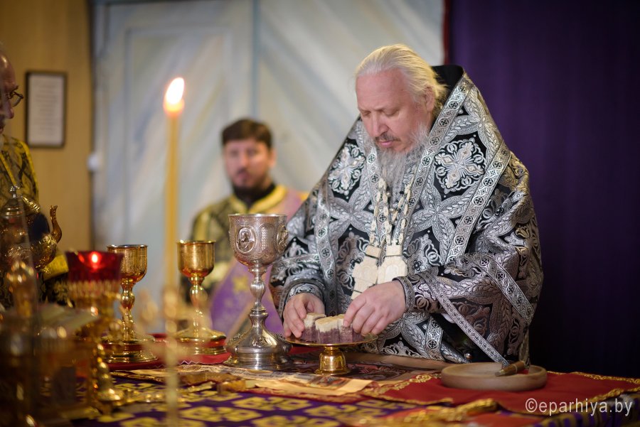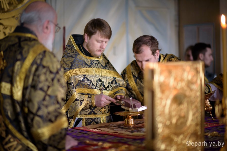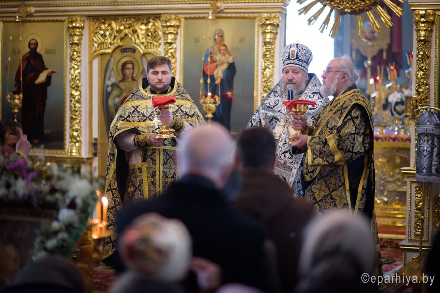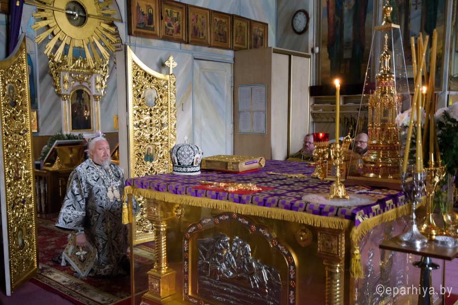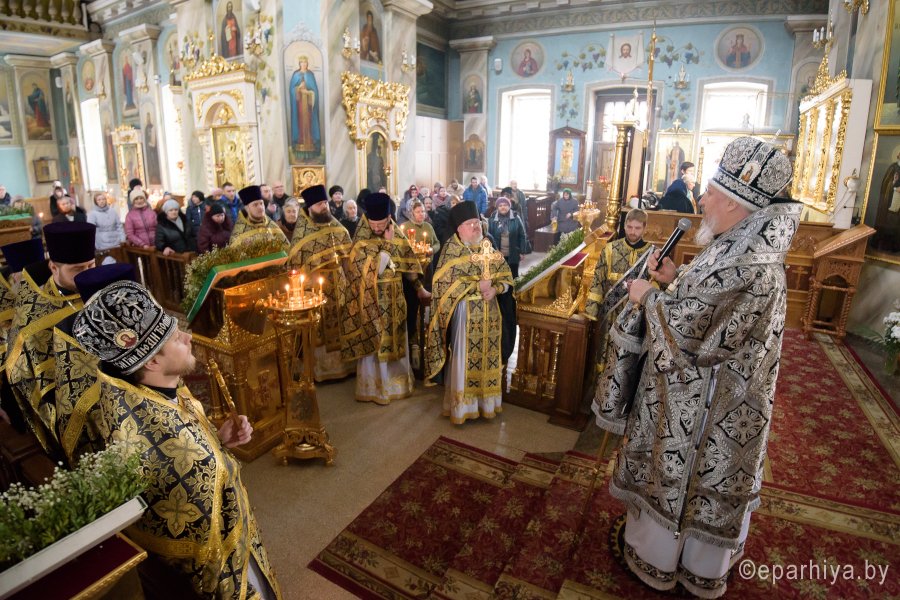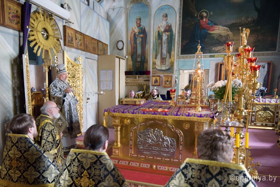 В среду первой седмицы Великого поста, Высокопреосвященнейший Стефан совершил Божественную литургию Преждеосвященных Даров в Свято-Петро-Павловского кафедральном соборе г.Гомеля 21 февраля 2018г. Высокопреосвященнейшему сослужили: секретарь Гомельской епархии протоиерей Георгий Алампиев и духовенство собора. По окончании богослужения Владыка обратился к молящимся со словами назидания, пожелав всем помощи Божией, поздравил причастников с принятием Святых Христовых Таин и преподал верующим Архипастырское благословение. |