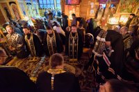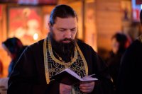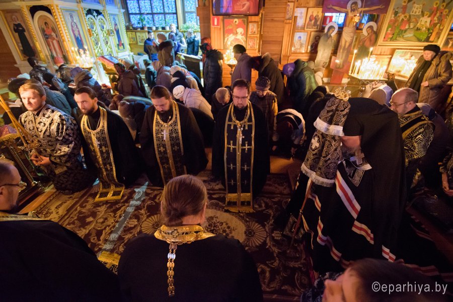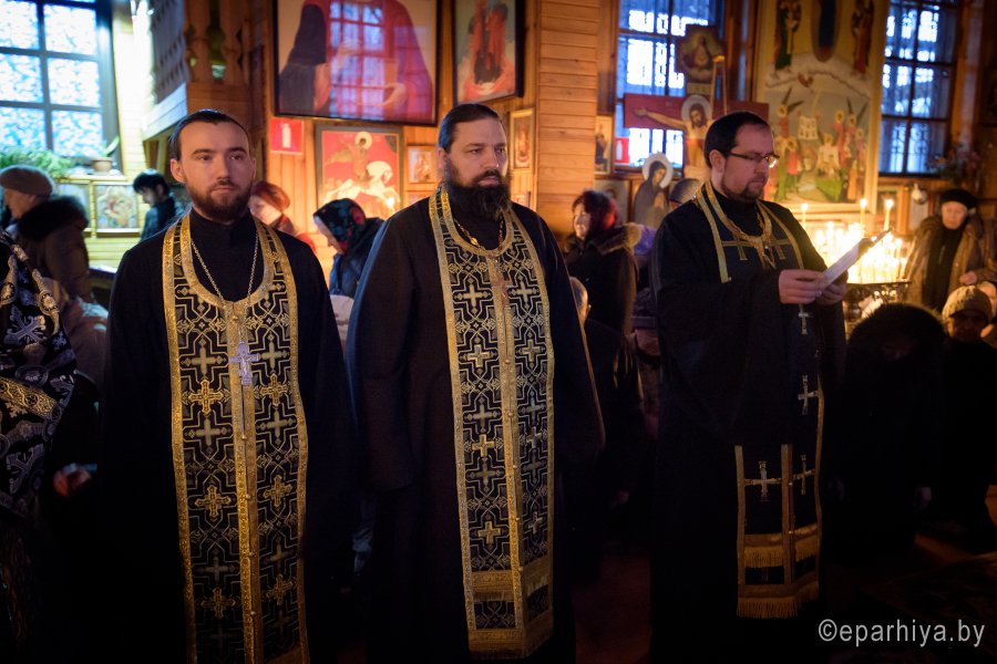 Великое повечерие с чтением Великого канона преподобного Андрея Критского в четвертый день Великого поста 22 февраля 2018г. Высокопреосвященнейший Стефан, архиепископ Гомельский и Жлобинский совершил в храме святого Архангела Михаила г.Гомеля. Высокопреосвященнейшему сослужили: благочинный Гомельского городского округа протоиерей Игорь Ольшанов и духовенство храма. По окончании богослужения Владыка обратился к молящимся со словами Архипастырского назидания и в память об этом дне раздал всем иконки. |