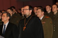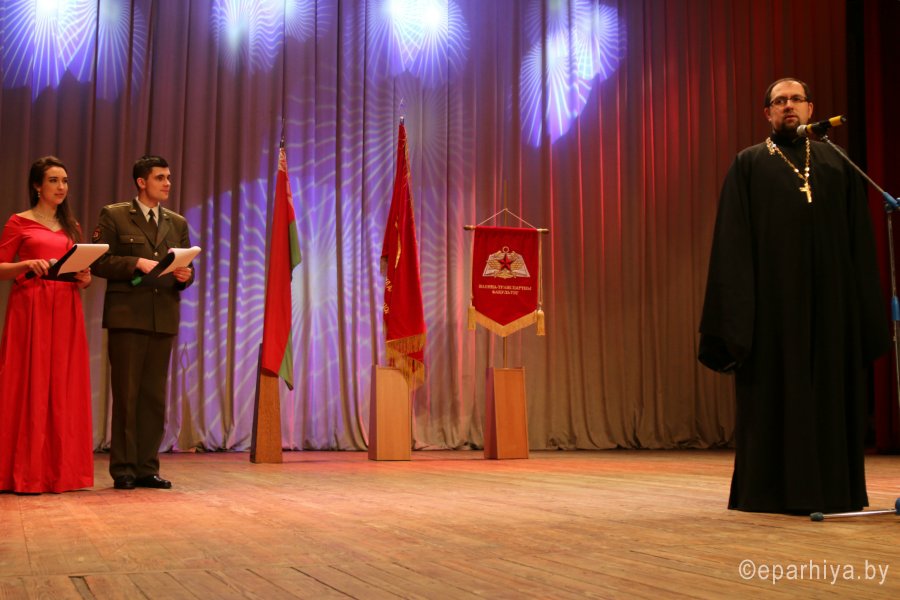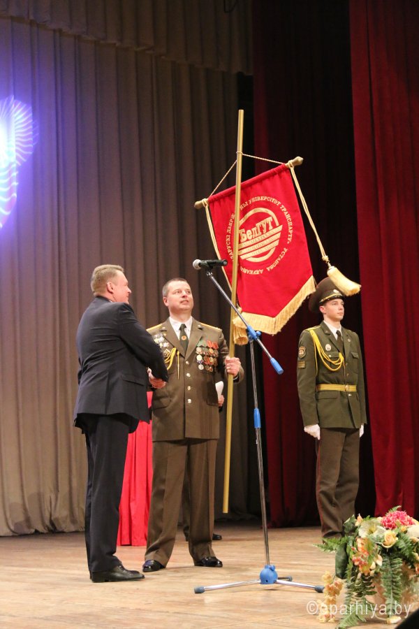 23 февраля отмечается один из дней воинской славы — День защитников Отечества и Вооруженных Сил Республики Беларусь, который ознаменован 100-летним юбилеем. 21 февраля 2018 года в Белорусском государственном университете транспорта состоялось торжественное собрание, посвященное этой дате. Открыл мероприятие начальник военно-транспортного факультета полковник А. А. Поддубный. В этом году праздник положил начало прекрасной традиции — из рук ректора университета Ю.И. Кулаженко факультет получил штандарт. Затем Юрий Иванович вручил Почетные грамоты университета и Благодарственные письма ряду офицеров, курсантов, а также военнослужащим в отставке. Почетные грамоты Гомельского городского исполнительного комитета, администрации Железнодорожного района и Благодарственные письма лучшим офицерам факультета вручил начальник управления образования облисполкома С. И. Порошин. Военный комиссар Гомельской области полковник А. В. Кривоносов по поручению министра обороны за активное взаимодействие в гражданско-патриотическом воспитании военнослужащих Гомельского гарнизона вручил юбилейные медали “100 год Узброеных Сіл Рэспублікі Беларусь” начальнику управления образования Гомельского облисполкома С. И. Порошину, проректорам университета, протоиерею Игорю Ольшанову. От имени архиепископа Гомельского и Жлобинского Стефана председатель отдела по взаимодействию с Вооруженными Силами и правоохранительными органами Гомельской епархии протоиерей Игорь Ольшанов вручил Архиерейскую грамоту начальнику ВТФ полковнику А. А. Поддубному, медаль Иоанна Кормянского — заместителю по идеологической работе подполковнику И. Г. Маруняку, а также поблагодарил факультет за плодотворное многолетнее сотрудничество и пожелал Божьей помощи в славном деле служения Отечеству. Участников этого мероприятия также поприветствовал председатель Гомельской областной организации общественного объединения “Белорусский союз офицеров” полковник в отставке Г. Г. Зайцев. |