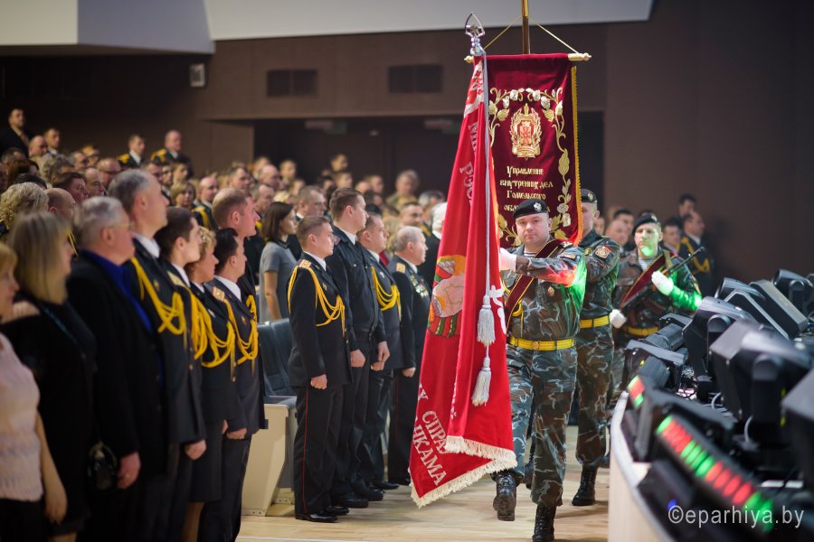 Высокопреосвященнейший Стефан, архиепископ Гомельский и Жлобинский принял участие в праздничном мероприятии, посвящённом предстоящему Дню белорусской милиции, которое состоялось 1 марта 2018г. в Гомельском Общественно-культурном центре. На мероприятии присутствовали председатель Гомельского городского исполнительного комитета Кириченко Петр Алексеевич, начальник Управления внутренних дел Гомельского облисполкома генерал-майор милиции Захарчук Владимир Андреевич, служащие и ветераны милиции. Обращаясь со словами поздравления к присутствующим Владыка отметил, что Белорусская милиция уже более ста лет стоит на страже интересов государства и общества, и поэтому очень важна духовная составляющая такого служения, позволяющая хранить верность своему высокому призванию, помнить о Присяге, долге и чести. Завершилось мероприятие праздничной концертной программой, представленной творческими коллективами г.Гомеля. |