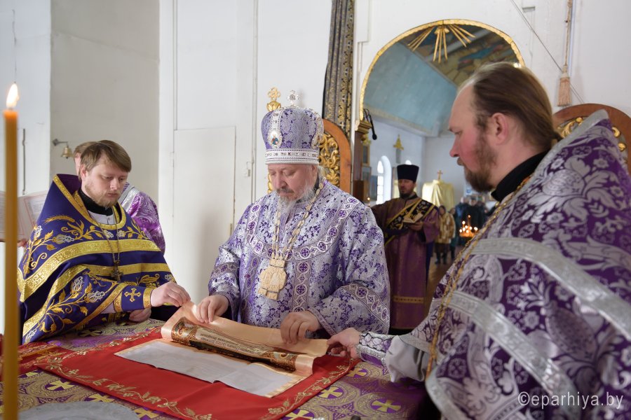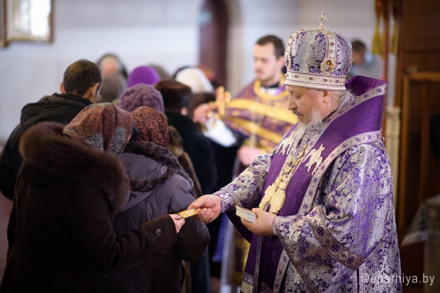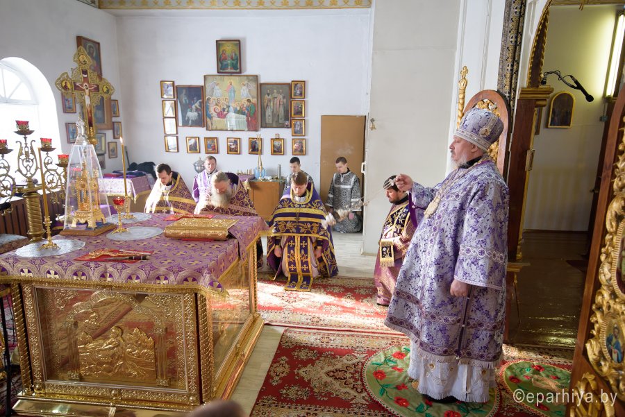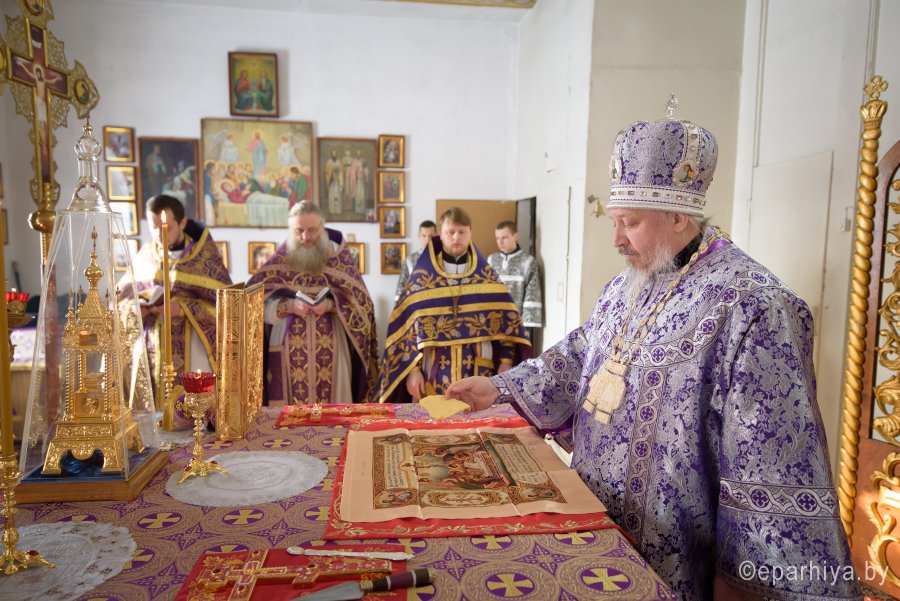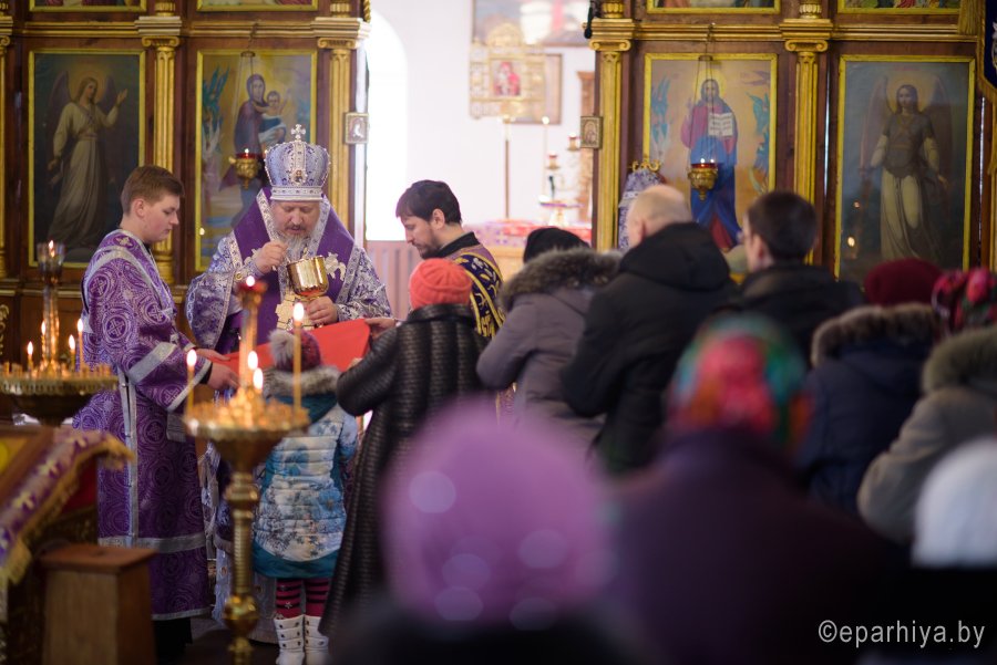 Божественную литургию Преждеосвященных Даров в пятницу 2-й седмицы Великого Поста 2 марта 2018г. Высокопреосвященнейший Стефан, архиепископ Гомельский и Жлобинский совершил в храме Святой Живоначальной Троицы г.Лоева. Высокопреосвященнейшему сослужили: секретарь Гомельской епархии протоиерей Георгий Алампиев, благочинный Лоевского округа иерей Дмитрий Чварков и духовенство округа. По окончании богослужения Владыка поздравил причастников с принятием Святых Христовых Таин, обратился к молящимся со словами Архипастырского назидания и в память об этом дне раздал всем присутствующим иконки. |