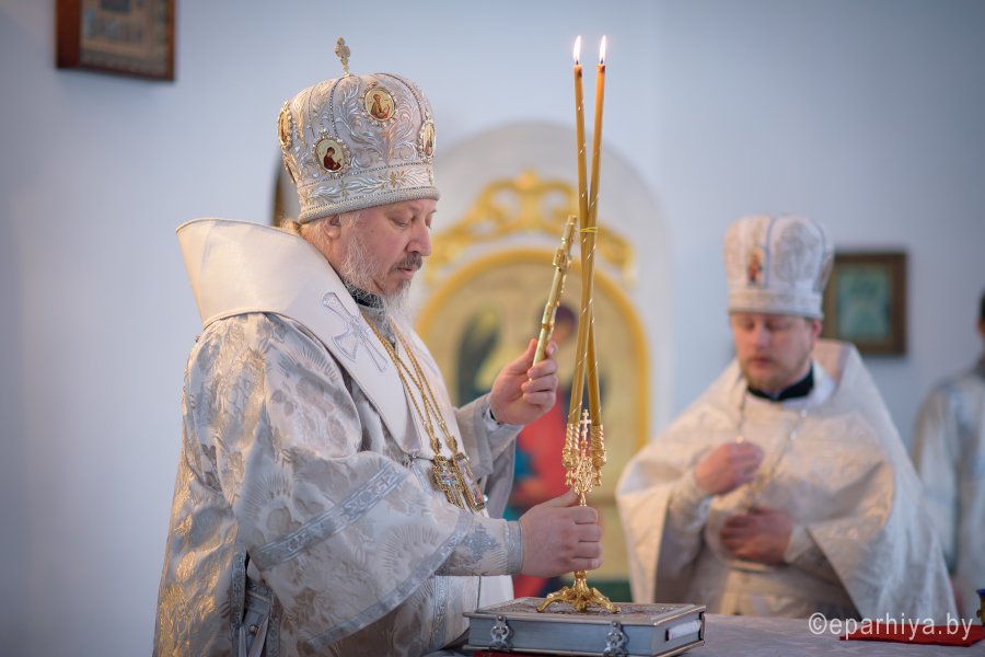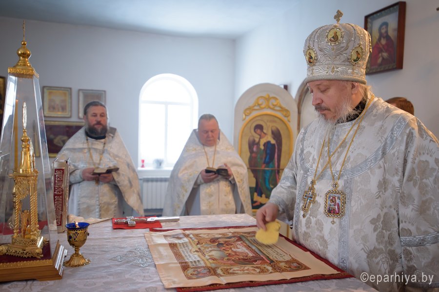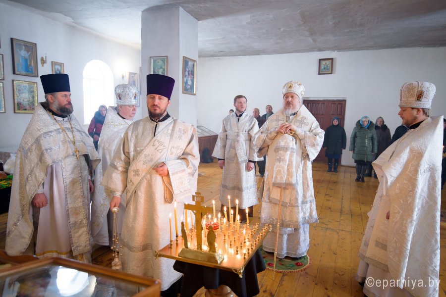 Божественную литургию в субботу 2-й седмицы Великого Поста, поминовение усопших, Высокопреосвященнейший Стефан, архиепископ Гомельский и Жлобинский совершил в храме святого Архангела Михаила аг.Папоротное. Высокопреосвященнейшему сослужили: секретарь Гомельской епархии протоиерей Георгий Алампиев, благочинный Жлобинского округа протоиерей Василий Пилипенко и настоятель прихода протоиерей Андрей Москаленко. По окончании богослужения Владыка совершил Великую панихиду, поздравил причастников с принятием Святых Христовых Таин и обратился со словами Архипастырского назидания и в память об этом дне раздал всем присутствующим иконки. За богослужением духовенство совершило заупокойное поминовение митрополита Иосифа (Семашко) и духовных лиц, подписавших в 1839 году Соборный акт о воссоединении униатов с Православием. |