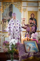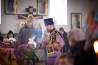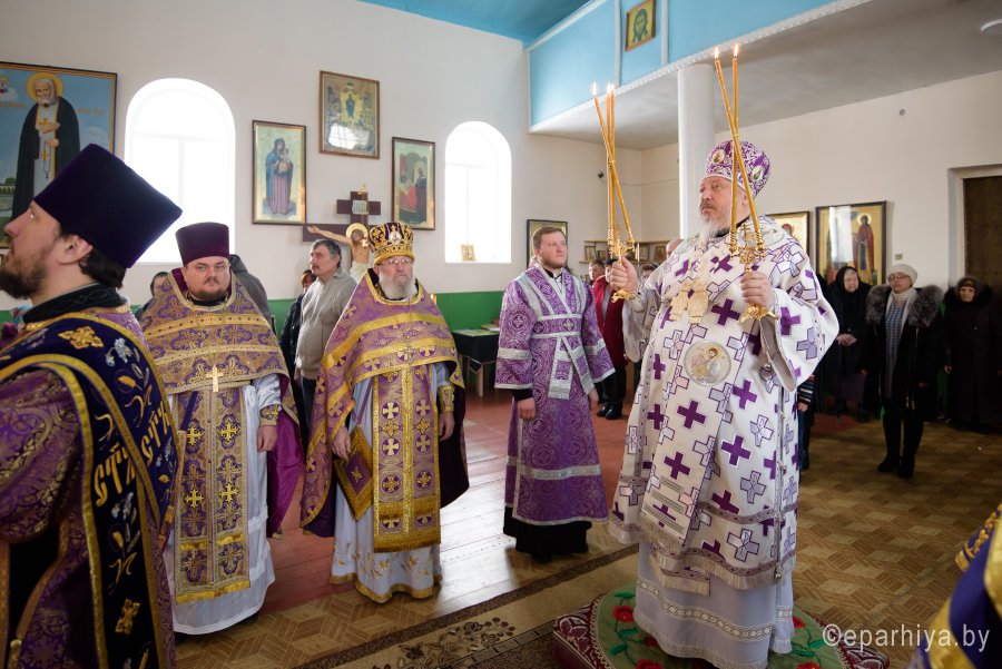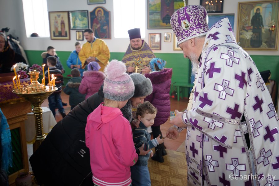 Божественную литургию в Неделю 2-ю Великого Поста, день памяти святителя Георгия Паламы 4 марта 2018г. Высокопреосвященейший Стефан, архиепископ Гомельский и Жлобинский совершил в храме прп. Евфросинии Полоцкой аг.Озерщина. Высокопреосвященнейшему сослужили: секретарь Гомельской епархии протоиерей Георгий Алампиев, благочинный Речицкого округа протоиерей Алексей Пешко и настоятель прихода протоиерей Иоанн Вечорко. По окончании богослужения Владыка поздравил причастников с принятием Святых Христовых Таин, пообщался с прихожанами и в память об этом дне раздал всем присутствующим иконки. |