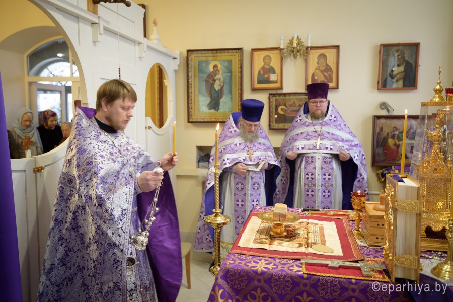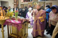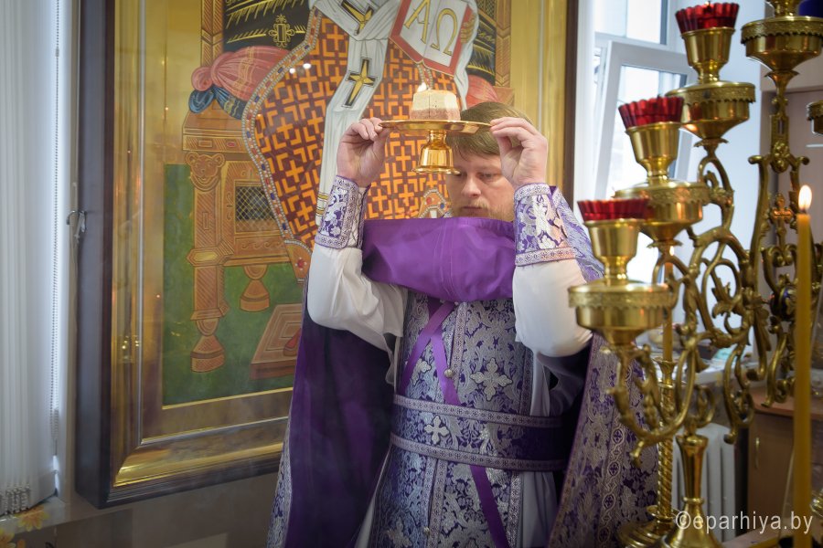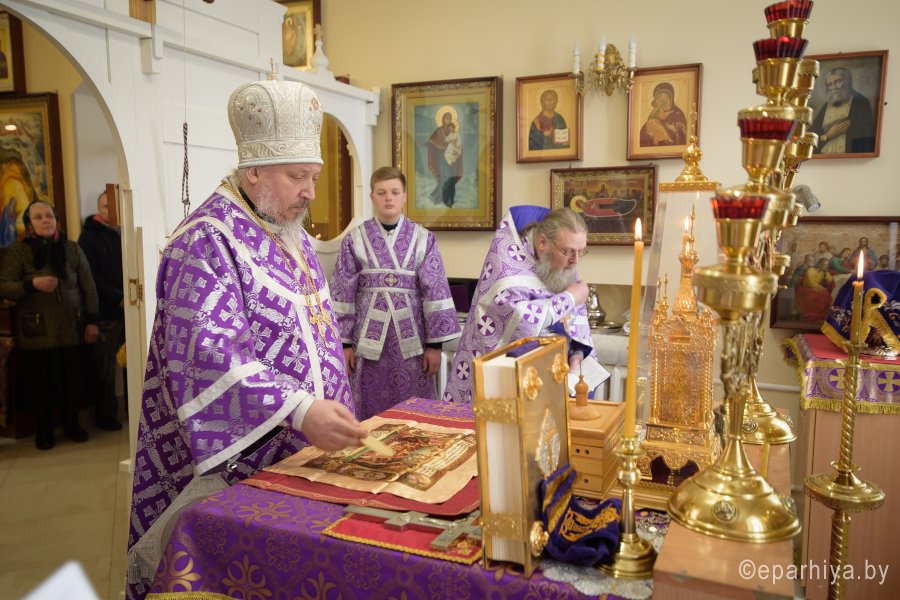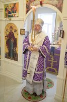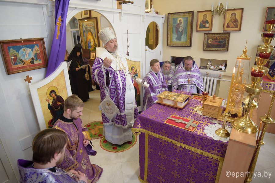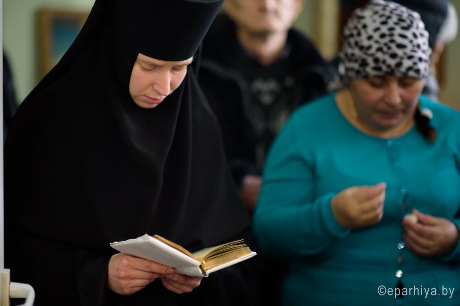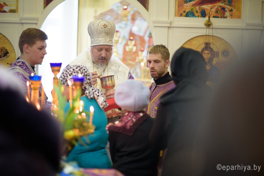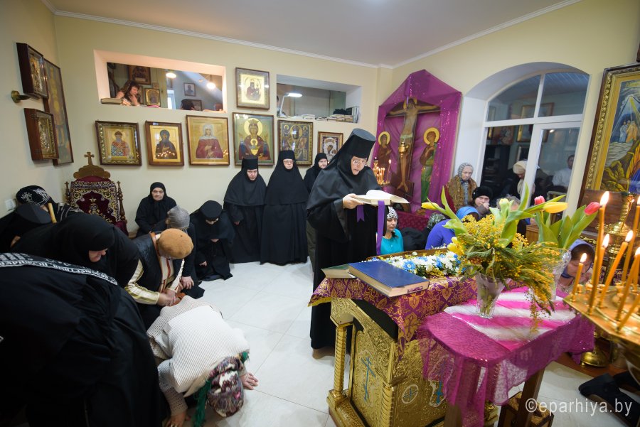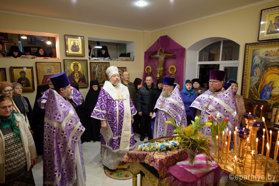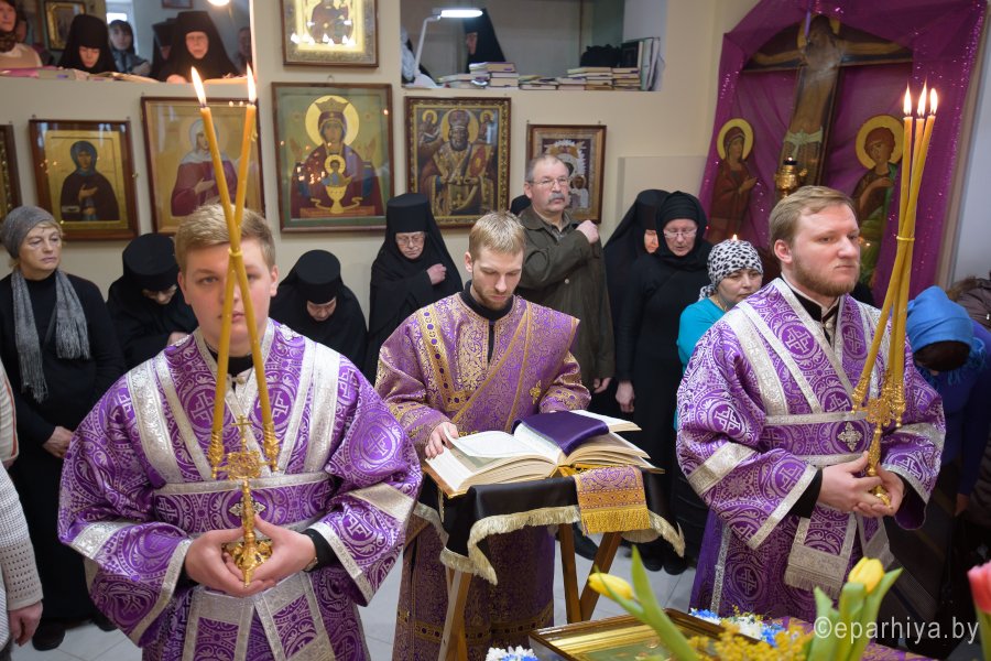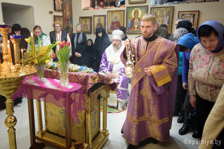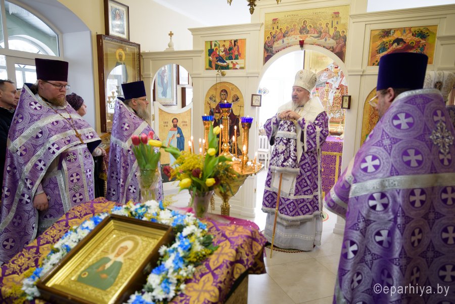Божественную литургию Преждеосвященных Даров в день памяти св.блж.Матроны Московской 8 марта 2018г. Высокопреосвященнейший Стефан, архиепископ Гомельский и Жлобинский совершил в Свято-Тихвинском женском монастыре г.Гомеля. Высокопреосвященнейшему сослужили: секретарь Гомельской епархии протоиерей Георгий Алампиев и духовенство обители. За богослужением молились игуменья Свято-Тихвинского женского монастыря Вера (Афонькина) с сестрами и старшая сестра Свято-Иоанно-Кормянского женского монастыря Архелая (Новикова) с сестрами. По окончании богослужения Владыка поздравил причастников с принятием Святых Христовых Таин, обратился к молящимся со словами Архипастырского назидания и в память об этом дне раздал всем присутствующим иконки. |