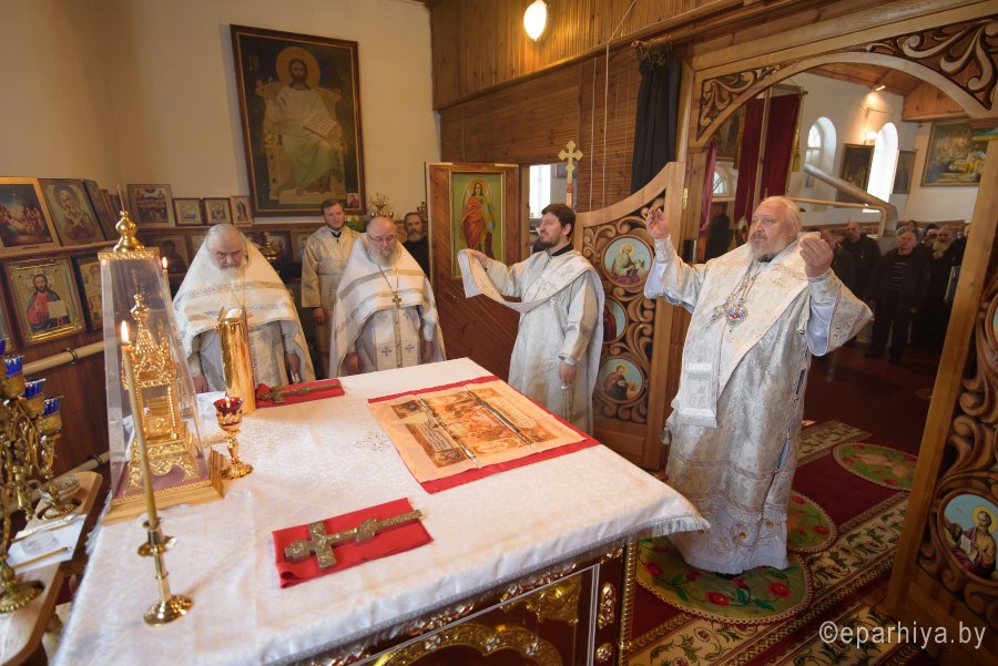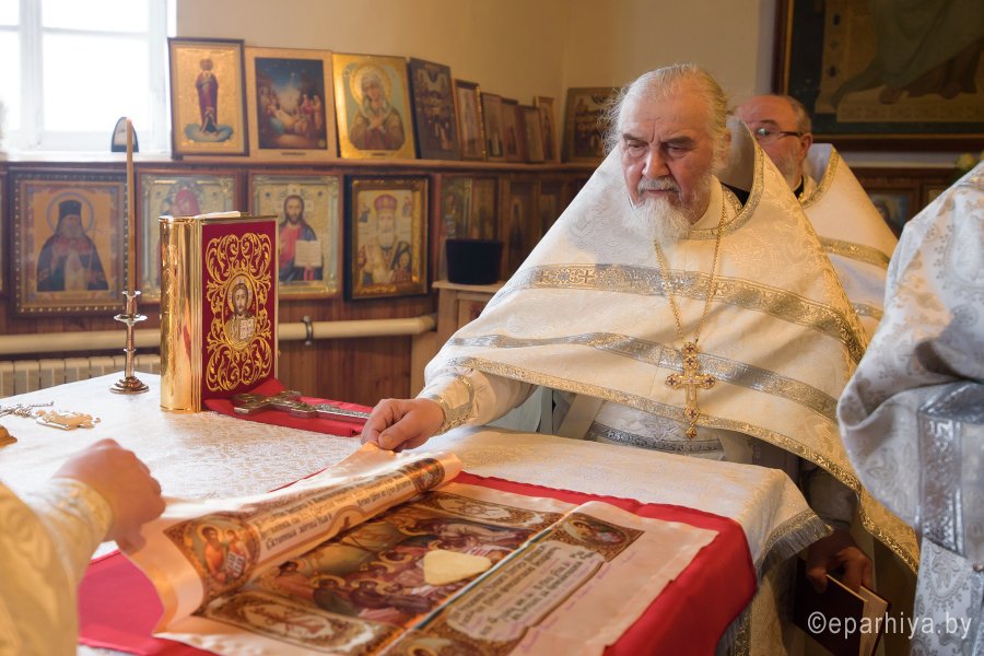 Божественную литургию в субботу 3-й седмицы Великого Поста, поминовение усопших 10 марта 2018г. Высокопреосвященнейший Стефан, архиепископ Гомельский и Жлобинский совершил в храме Покрова Пресвятой Богородицы аг.Бабичи. Высокопреосвященнейшему сослужили: секретарь Гомельской епархии протоиерей Георгий Алампиев, благочинный Речицкого округа протоиерей Алексей Пешко и настоятель прихода протоиерей Николай Мозгов. За богослужением Высокопреосвященнейший Владыка Стефан удостоил настоятеля прихода протоиерея Николая Мозгова правом ношения наперсного креста с украшением. По окончании Литургии Владыка совершил Великую панихиду, поздравил причастников с принятием Святых Христовых Таин и обратился со словами Архипастырского назидания и в память об этом дне раздал всем присутствующим иконки. За богослужением духовенство совершило заупокойное поминовение митрополита Иосифа (Семашко) и духовных лиц, подписавших в 1839 году Соборный акт о воссоединении униатов с Православием. |