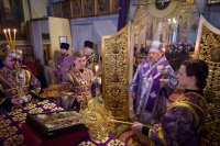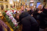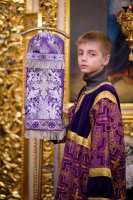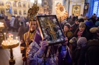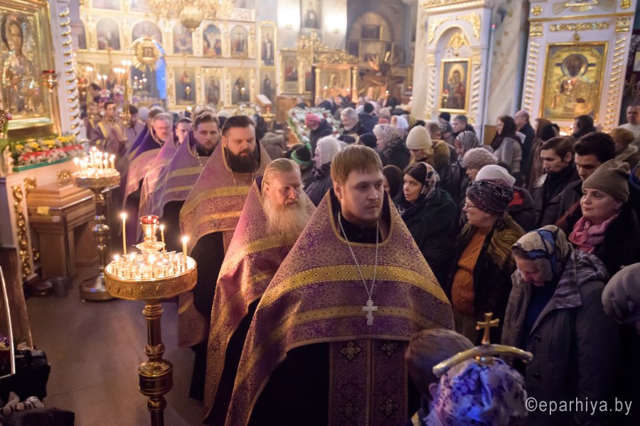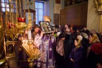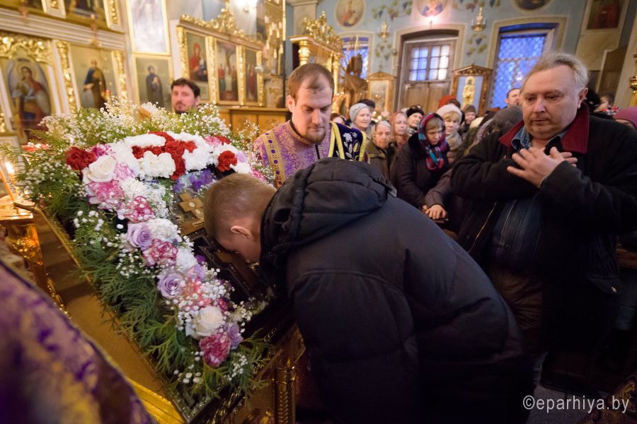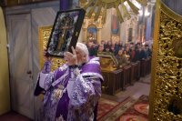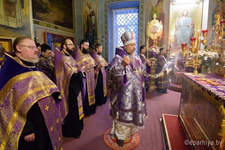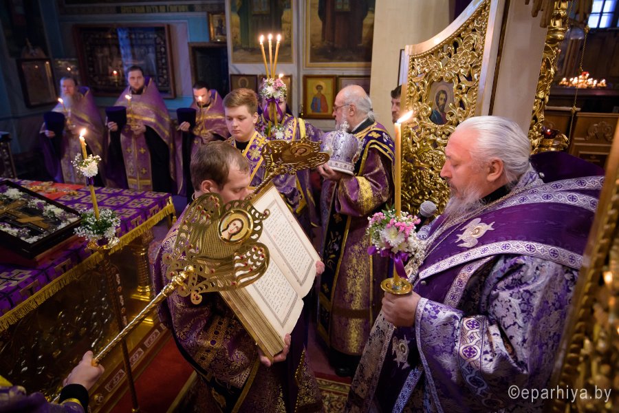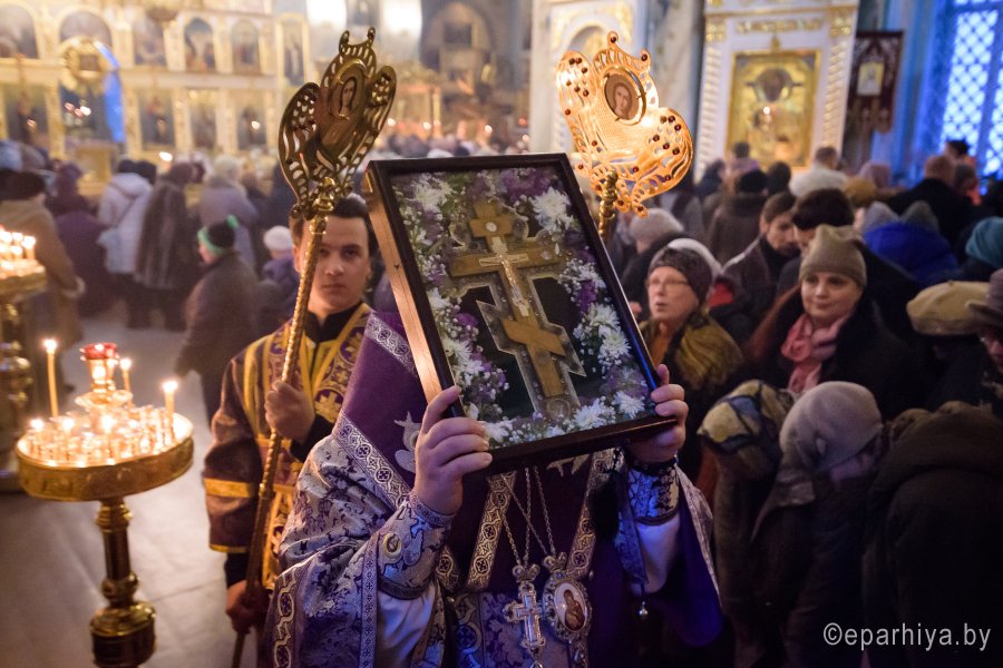 Всенощное бдение с чином выноса Креста в канун Недели третьей Великого поста, Кретоспоклонной 10 марта 2018г. Высокопреосвященнейший Стефан совершил в Свято-Петро-Павловском кафедральном соборе г.Гомеля. Высокопреосвященейшему сослужили: секретарь Гомельской епархии протоиерей Георгий Алампиев и духовенство собора. По окончании богослужения Владыка обратился к молящимся со словами Архипастырского назидания. «В субботу третьей седмицы Великого поста, во время Всенощного бдения после великого славословия из алтаря на середину храма выносится Крест, которому поклоняются православные христиане. При поклонении Кресту Церковь поет: «Кресту Твоему покланяемся, Владыко, и святое воскресение Твое славим». Эта песнь поется и на Литургии вместо «Трисвятого». Церковь выставляет в середине Четыредесятницы верующим Крест для того, чтобы напоминанием о страданиях и смерти Господней воодушевить и укрепить постящихся к продолжению подвига поста, напомнить всем верующим о том, что путь к Воскресению лежит именно через Крест и спасение души невозможно без борьбы с грехами и страстями, без скорбей и страданий. Обратно в алтарь Крест уносится в пятницу четвертой седмицы Великого поста.» |