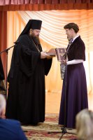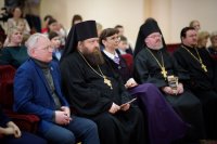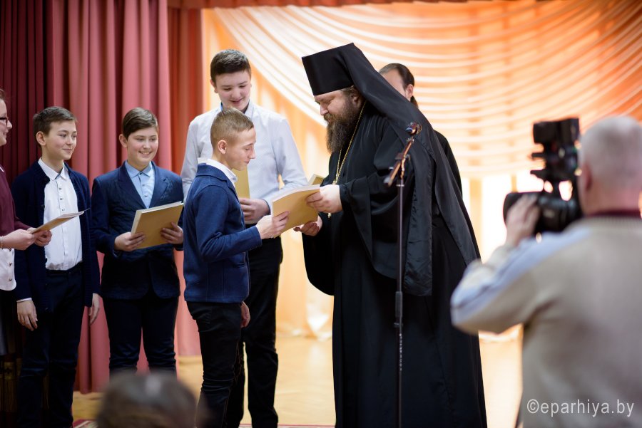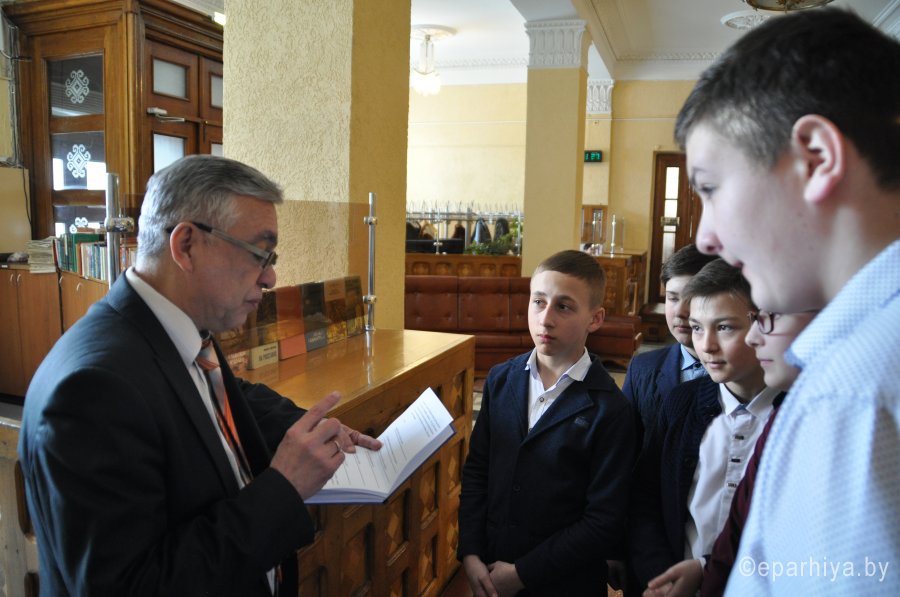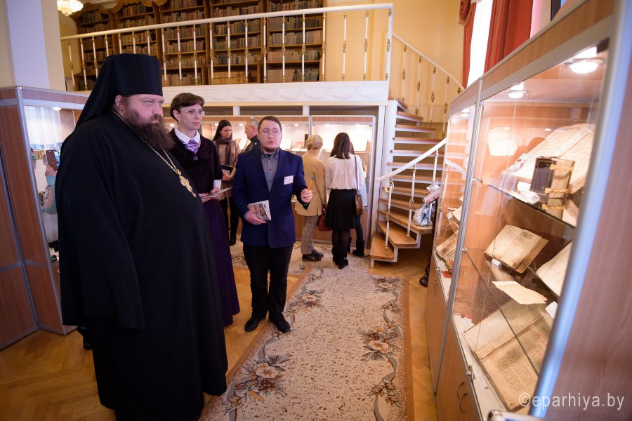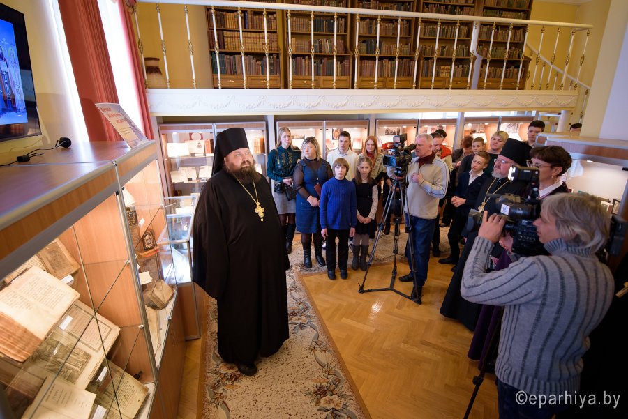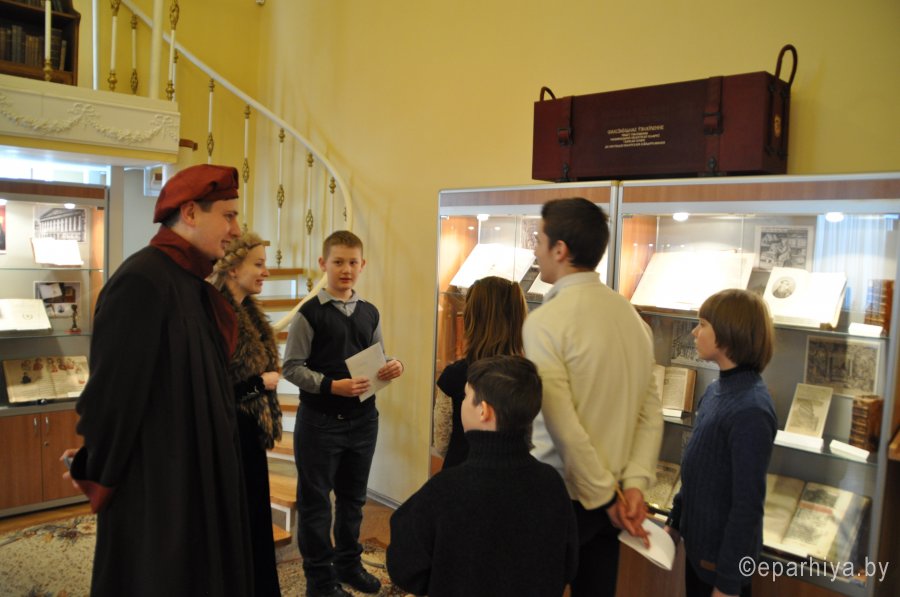 В преддверии Дня православной книги состоялся, ставший уже традиционным, исторический квест «Храм мудрости: вчера, сегодня, завтра». В стенах Гомельской областной универсальной библиотеки 4 команды школьников не без труда справлялись с интеллектуальными испытаниями, искали подсказки в уголках различных отделов учреждения, умело использовали информационные ресурсы и, в общем, хорошо проводили время. Смекалка, ловкость, работа в команде — эти и другие качества определили победителя увлекательной игры. После активного мероприятия в Музее редкой книги прошло торжественное открытие выставки «Вечная жемчужина мудрости», в котором, по благословению Высокопреосвященного Стефана, приняли участие наместник Свято-Никольского мужского монастыря в г.Гомеле архимандрит Амвросий (Шевцов) и духовенство епархии. В экспозиции представлены раритетные издания религиозного содержания XVII – начала XX веков из фондов Гомельской епархии. Особое внимание посетителей привлекает уникальный том Библии ХIХ века в гравюрах Гюстава Доре. Трехтомник Библии был выпущен в Санкт-Петербурге в 1888 году. Эта книга священного писания, изданная в количестве всего 100 экземпляров, сразу стала библиографической редкостью. Библия содержала 230 гравюр знаменитого французского художника Гюстава Доре. Также на выставке представлены литургические церковно-служебные книги, обеспечивающие потребности церкви – Минеи, Триодионы, Часословы, Святцы. Экспозиция продлится до 15 апреля. После торжественной церемонии открытия состоялась литературно-музыкальная концертная программа в актовом зале библиотеки. С теплым приветствием и поздравлением с Днем православной книги к зрителям обратился архимандрит Амвросий (Шевцов). Затем священнослужитель совершил традиционную передачу книг библиотеке от Гомельской епархии, а также передал книги, собранные благодаря акции «Подари православную книгу», Центру, дружественному подросткам «Подросток», на базе Центральной городской детской поликлиники. В ходе мероприятия священнослужитель вручил дипломы и призы победителям и участникам исторического квеста, поздравив ребят и пожелав им несмотря ни на что, достигать самых больших вершин. В завершении концертной программы Председатель Гомельского областного отделения ОО "Союз писателей Беларуси" Владимир Гаврилович объявил литературный конкурс «Православие – моя надежда!», организованный Гомельской епархией совместно с Гомельским областным отделением Союза писателей Беларуси. Областной литературный конкурс «Православие – моя надежда!» будет проходить с 14 марта по 5 сентября 2018 года. Конкурс проводится для создания и популяризации талантливых произведений на православную тематику, а также выявления и поддержки талантливых писателей и начинающих авторов, проживающих на территории Гомельской области. |