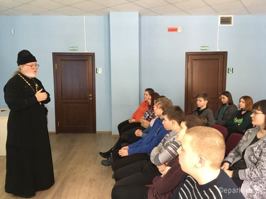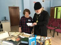 Мероприятие, посвященное Дню православной книги, состоялось 13 марта 2018 г. в интеллект-центре библиотека-филиал №4 г. Гомеля. Во время насыщенной встречи учащиеся 8-го класса ГУО "Средняя школа № 25 г. Гомеля" от библиотекаря первой категории Веры Семеновны Шохиревой узнали интересные факты об истории книгопечатания, об основных вехах развития печатного дела на Руси, а также о предназначении богослужебных книг. А клирик прихода храма прп. Серафима Саровского в г. Гомеле протоиерей Анатолий Федотов рассказал ребятам о самой важной книге в жизни человека, о Библии. Была затронута и тема молитвы. Проникновенно прозвучали слова Пушкина в стихотворении «Отче наш», зачитанном Верой Семеновной. В завершении встречи ребята с удивлением узнали, что автор недавно появившейся в библиотеке новой книги «Неизбежность Пасхи», насельник мужского монастыря архимандрит Савва (Мажуко), также учился в их школе. В конце встречи в дар библиотеке от прихода храма были переданы книги православной тематики. |