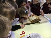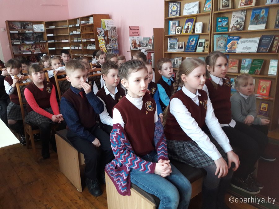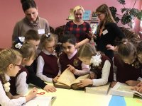 В рамках недели православной книги, в учреждении культуры «Детская районная библиотека г. Жлобина» состоялась встреча ребят из 2 «Б» класса учреждения образования «Гимназия №1 г. Жлобина» со священником прихода храма Святой Живоначальной Троицы, иереем Павлом Кулишом. В теплой и душевной атмосфере проходила беседа о любви к слову, о любви к знаниям. Ведь самые первые книги, которые появились на свете, были духовными. Письму и грамоте обучались по церковным изданиям. Были подготовлены выставки православной литературы «Сохрани в себе человека», «Православная азбука», «Золотой ключик духовности детям», с которыми мог ознакомиться любой желающий. Дети с интересом рассматривали раритетное издание церковной книги, изданной еще в 19 веке: в кожаном переплете, с пожелтевшие листами и страницы с большими полями для заметок. А сейчас в современном мире издается очень много духовной литературы, красочной, интересной и познавательной. В конце встречи иерей Павел Кулиш пожелал всем добра, а ребятам побольше читать и стремиться к новым знаниям. |