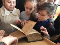 14 марта православными христианами отмечается День православной книги. Этот праздник был установлен Решением Священного Синода Русской Православной Церкви и по инициативе Патриарха Московского и всея Руси Кирилла как привлечения общественного внимания и издательского интереса к популяризации духовно-нравственной литературы, направленной на воспитание подрастающих поколений в духе истинных христианских ценностей. Он помогает людям осмыслить значение православной книги, призывает прибегать к её мудрости и благодати. В этот день нельзя не вспомнить двух просветителей - солунских братьев Кирилла и Мефодия. Это были очень образованные и мудрые люди. Солунские братья часть букв взяли из греческого алфавита, часть придумали сами. Они переписали для своего народа с помощью нового алфавита несколько библейских книг. Святые Кирилл и Мефодий старательно выписывали каждую буковку. Заглавные буквы писали красными чернилами. Книги переплетали в кожу и богато украшали золотом, серебром и драгоценными камнями. За этот подвиг – создание славянской письменности – братья были причислены к лику святых. Старинные книги пришли к нам из далекого прошлого; благодаря бережному и внимательному отношению к ним многих поколений людей мы сегодня видим эти книги, можем их изучать, смотреть, читать. А дальнейшая судьба этих книг зависит от нас. Если мы сегодня не будем бережно сохранять эти книги, если не будем прилагать к этому усилия, то следующие поколения людей эти книги уже не увидят. Эта мысль прослеживалась на протяжении всей беседы клирика храма Святой Живоначальной Троицы иерея Павла Кулиша с учениками ГУО «Средняя школа № 9 г. Жлобина», которая состоялась 13 марта 2018 года. Ребята с большим вниманием и трепетом листали страницы старой книги, которой более 100 лет. |