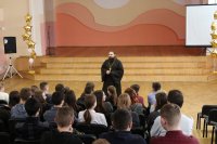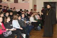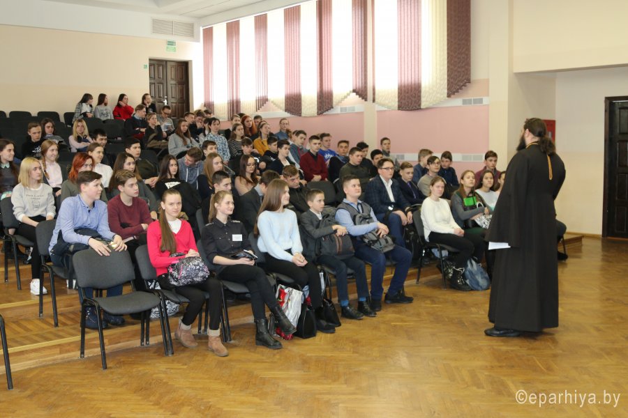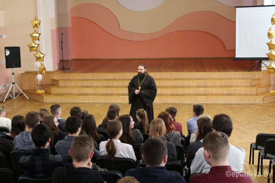 С 2009 года по решению Священного синода Русской Православной Церкви празднуется День православной книги, которая играет важную роль в духовном и культурном развитии личности человека. 14 марта в День православной книги в ГУО "Средняя школа №52 г.Гомеля" состоялась встреча с клириком храма святого Архангела Михаила в г. Гомеле иереем Максимом Новиком и учащимися 8-9 классов. Священнослужитель рассказал об истории формирования русского языка, воспитательной роли книги в формировании духовного мировоззрения человека, а также ответил на вопросы. |