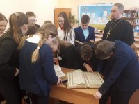 В преддверии Дня православной книги в храме Иверской иконы Божией Матери прошел ряд мероприятий приуроченных к празднику. Священнослужители храма провели беседы о важности православного учения, изучении Божьего слова и христианской вере в ГУО "Гимназия №46 имени Блеза Паскаля" и Гомельской детской библиотеке. Большой вклад внесли прихожане храма в проведение акции "Подари православную книгу". Приходом было собрано около тысячи книг, которые были переданы в ГУО "Улуковская вспомогательная школа-интернат", ГУСО "Дуяновский дом-интернат для престарелых и инвалидов" и ГУО "Гимназия №46 имени Блеза Паскаля". |