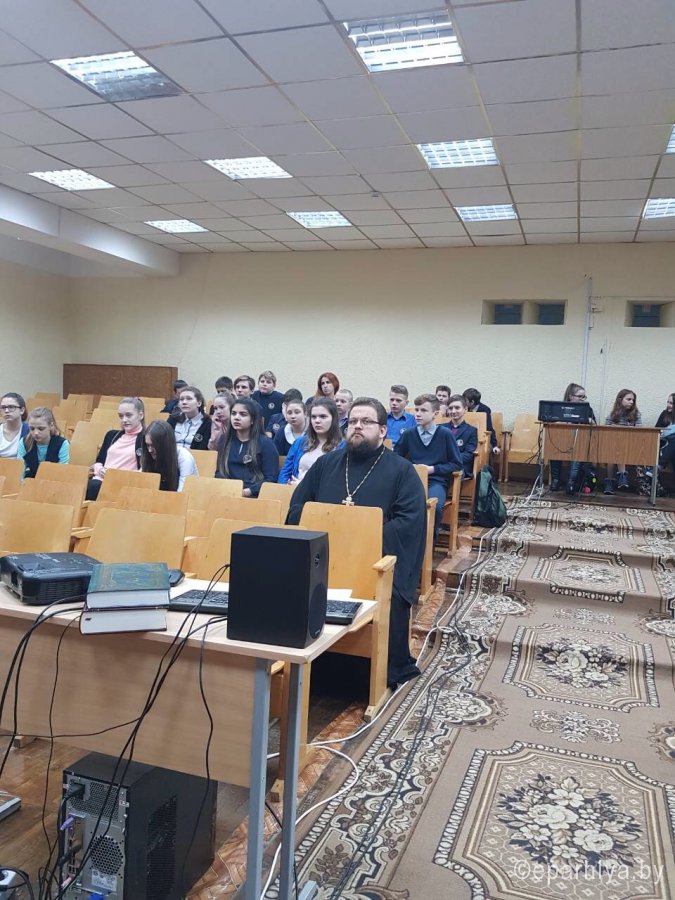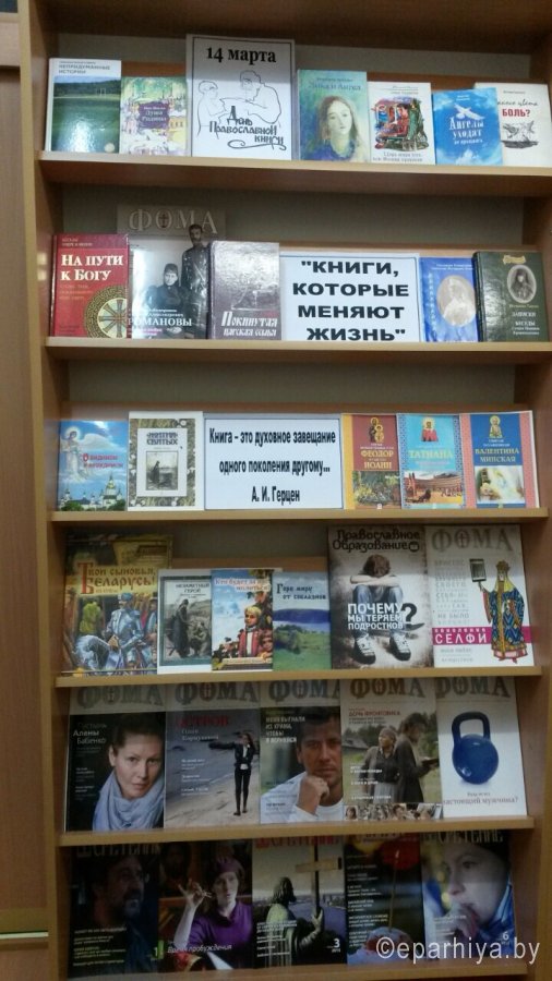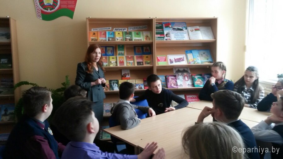 В рамках празднования Дня православной книги в школьной библиотеке ГУО «Средняя школа № 10 г. Светлогорска» была организована тематическая неделя «Через книгу – к добру и свету». Что такое православная книга в наше время? Добро и зло, любовь и прощение, милосердие и забота о ближних - все это составляет содержание православных книг. Евангельская тематика всегда присутствовала в произведениях многих русских писателей. На неделе православной книги библиотекарь Марова Татьяна Васильевна и педагоги школы провели мероприятия для учащихся разных возрастных категорий: выставку-просмотр печатных изданий «Сокровенный мир Православия», обзор книг у книжной выставки, видеопросмотр «Святые и святыни Православия», час поэзии «Доброта сближает сердца», классный час «Православные книги в твоей жизни»; литературный портрет «Навстречу детским сердцам. Б. Ганаго - детям». В библиотеке учреждения образования создан фонд православной литературы, а также имеются периодические православные издания «Фома», «Сретение», «Шишкин лес», «Мир с Богом», «Ангелочек». 15 марта для учащихся 7-х классов состоялась встреча «Православные книги в твоей жизни», на которую был приглашен клирик прихода храма Преображения Господня в г. Светлогорске иерей Евгений Новик. Библиотекарь Марова Татьяна Васильевна рассказала ребятам об истории возникновения праздника, о значении православной книги в жизни человека. Затем школьники посмотрели фильм о первопечатнике Спиридоне Соболе «Начало славных дел», после просмотра которого иерей Евгений Новик преподнес в дар школьной библиотеке экземпляр «Новаго Запавета» и «Закон Божий». |