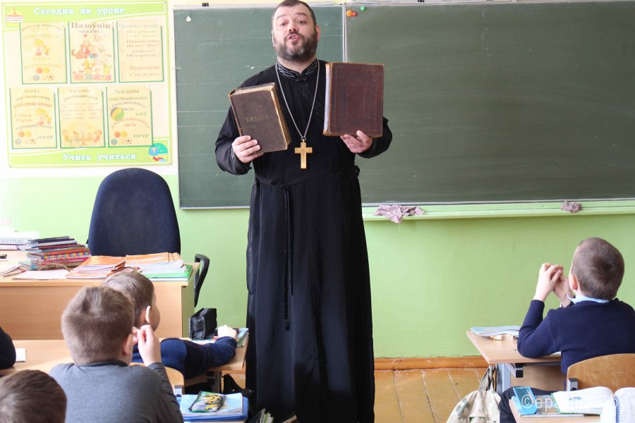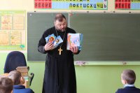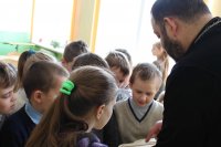 Ко Дню православной книги преподаватели Воскресной школы храма святого великомученика Георгия Победоносца в г.Гомеле подготовили и провели тематический открытый урок для ребят и их родителей.На занятии присутствовал настоятель прихода протоиерей Дмитрий Гончаров. По окончании урока к собравшимся обратился священнослужитель, поблагодарил за очень интересный урок и передал в библиотеку несколько десятков новых книг для детей и родителей. Также клирик храма протоиерей Максим Колеватов провел беседу «Есть ли место духовному слову в жизни современного человека» в Воскресной школе для взрослых. В рамках мероприятия в УО «Гомельский государственный профессиональный лицей приборостроения» состоялся кинолекторий «История православной книги». Учащиеся учреждения узнали много интересного о первых книгах и о зарождения книгопечатания на Руси. Также, в храме действует выставка старинных книг «Древние книги — духовное наследие славян». В рамках Дня Православной книги протоиерей Максим Колеватов провел познавательный урок в ГУО "Детский сад-средняя школа №23 г. Гомеля" для ребят 3 класса, на котором присутствовала директор школы Светлана Владимировна Брондукова. Ребята узнали, кто и когда напечатал первую книгу, смогли подержать в руках и даже пробовали читать очень старинную Библию, а также узнали о главных книгах православного христианина. В дар школе были переданы православные книги от прихода святого великомученика Георгия Победоносца. Директор школы,в свою очередь, поблагодарила батюшку за очень познавательный урок и за подарки, и с большим удовольствием подержала в руках старинные книги. |