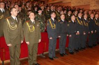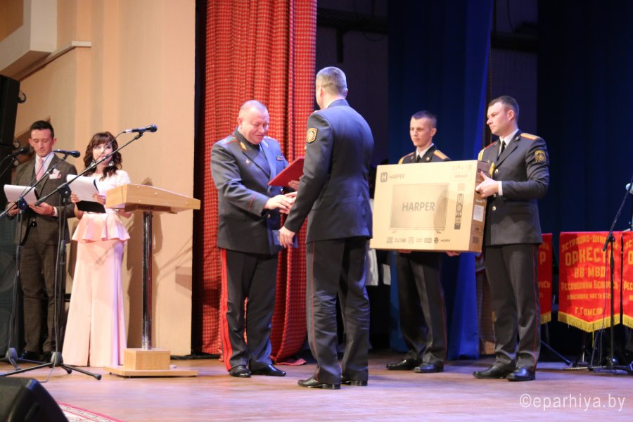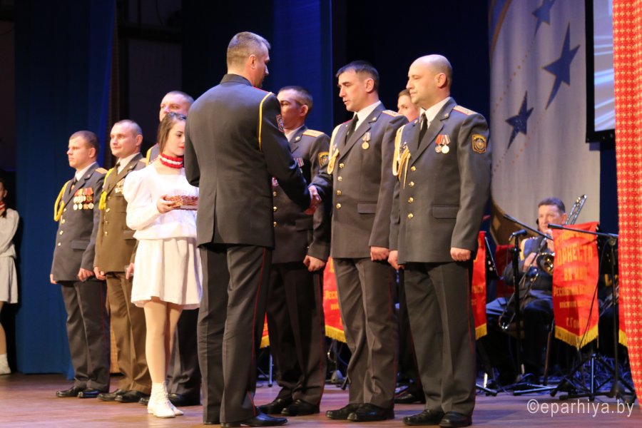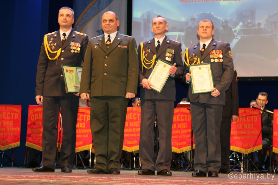 Торжественное собрание, посвященное 100-летию внутренних войск МВД Республики Беларусь, состоялось 15 марта в ГУ «Гомельский областной дом учащихся и работников учреждений профессионального образования». История внутренних войск МВД Беларуси богата героическими традициями, неразрывно связанными с историей нашего государства. Служащие внутренних войск честно выполняли свой долг в мирные годы, оберегая жизнь граждан страны, а также на полях сражений в годы Великой Отечественной войны. На торжественном собрании руководство внутренних войск МВД Республики Беларусь, представители силовых структур, города и области чествовали лучших сотрудников и ветеранов. Поздравил военнослужащих в\ч 5525, с которыми Гомельскую епархию связывает долгое и плодотворное сотрудничество, и председатель отдела по взаимодействию с Вооружёнными Силами и правоохранительными органами Гомельской епархии протоиерей Игорь Ольшанов. |