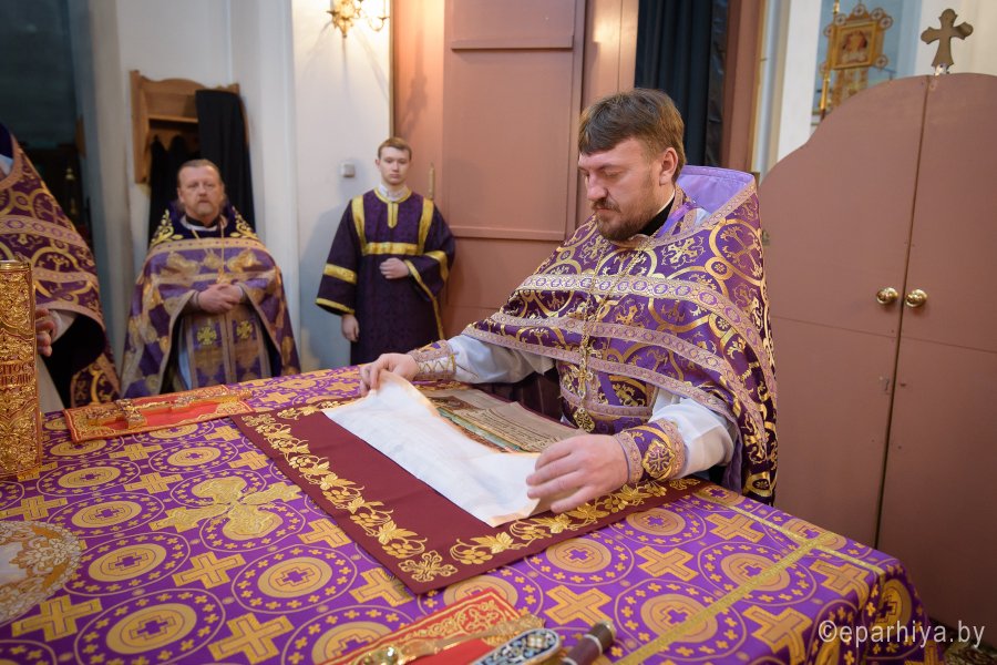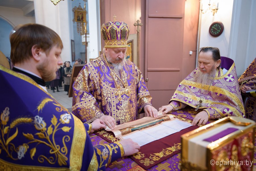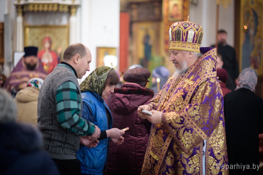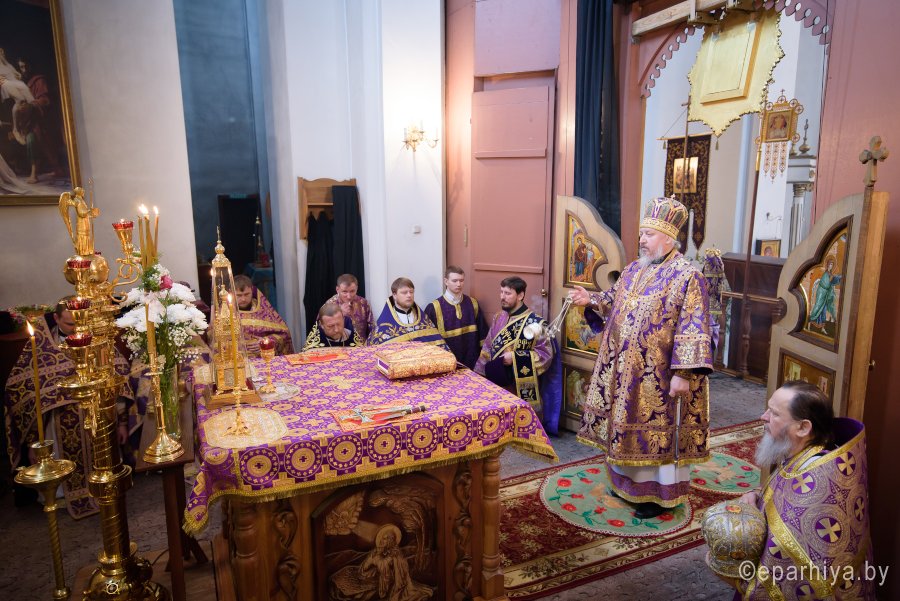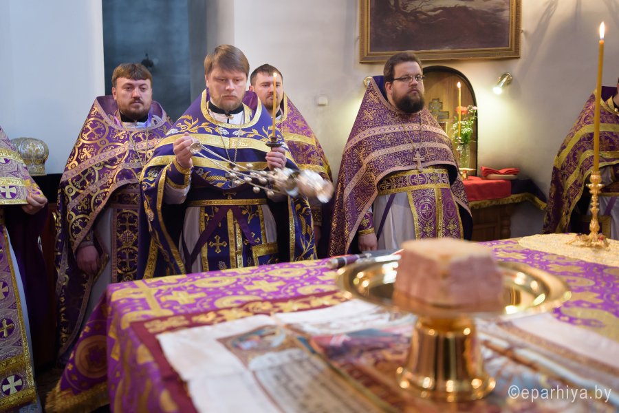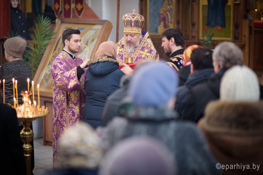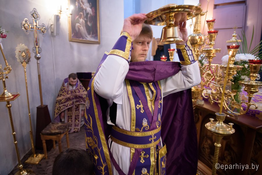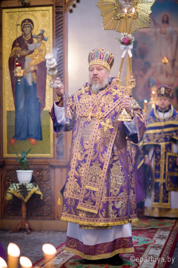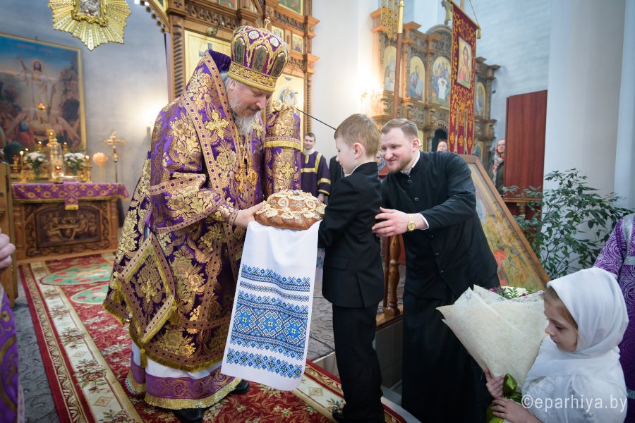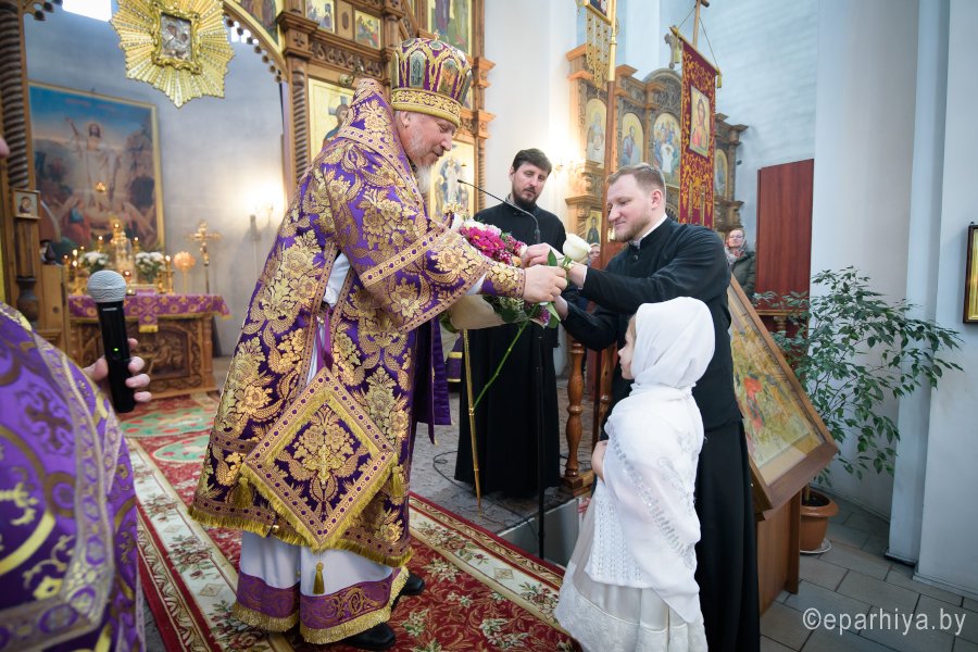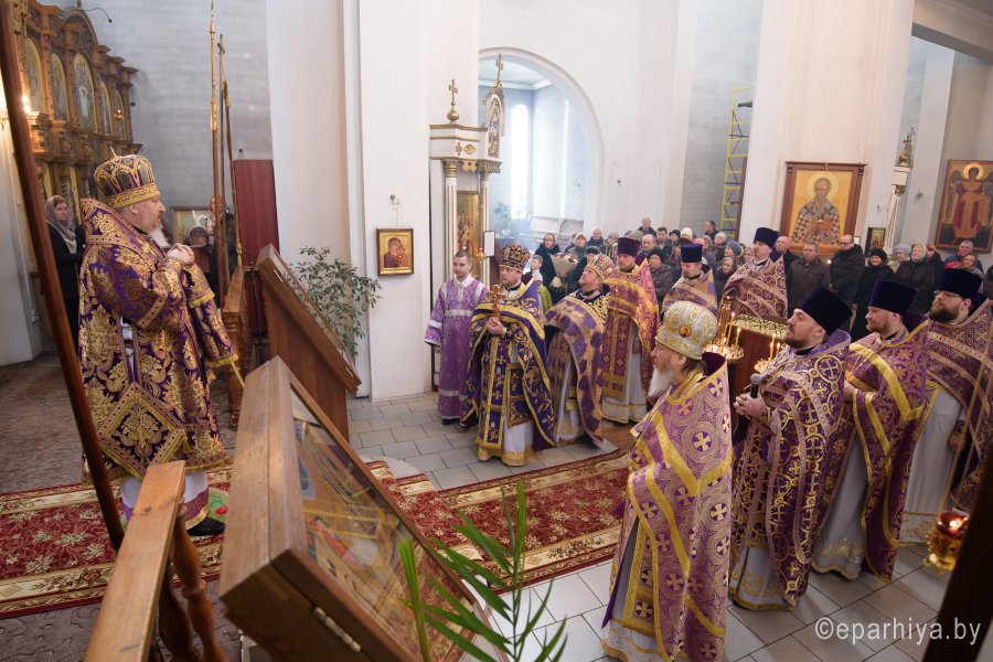 Божественную литургию Преждеосвященных Даров в пятницу 4-й седмицы Великого Поста 16 марта 2018г. Высокопреосвященнейший Стефан, архиепископ Гомельский и Жлобинский совершил в храме Преображения Господня г.Светлогорска. Высокопреосвященнейшему сослужили: секретарь Гомельской епархии протоиерей Георгий Алампиев, благочинный Светлогорского округа протоиерей Александр Кисель и духовенство округа. По окончании богослужения Владыка поздравил причастников с принятием Святых Христовых Таин, обратился к молящимся со словами Архипастырского назидания и в память об этом дне раздал всем присутствующим иконки. |