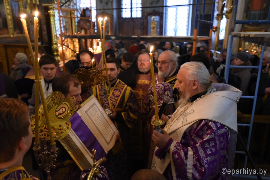 Всенощное бдение в канун Недели четвертой Великого поста, дня памяти прп. Иоанна Лествичника, 18 марта 2018г. Высокопреосвященнейший Стефан в сослужении духовенства собора совершил в Свято-Петро-Павловском кафедральном соборе г.Гомеля. По окончании богослужения Владыка обратился к молящимся со словами Архипастырского назидания. |