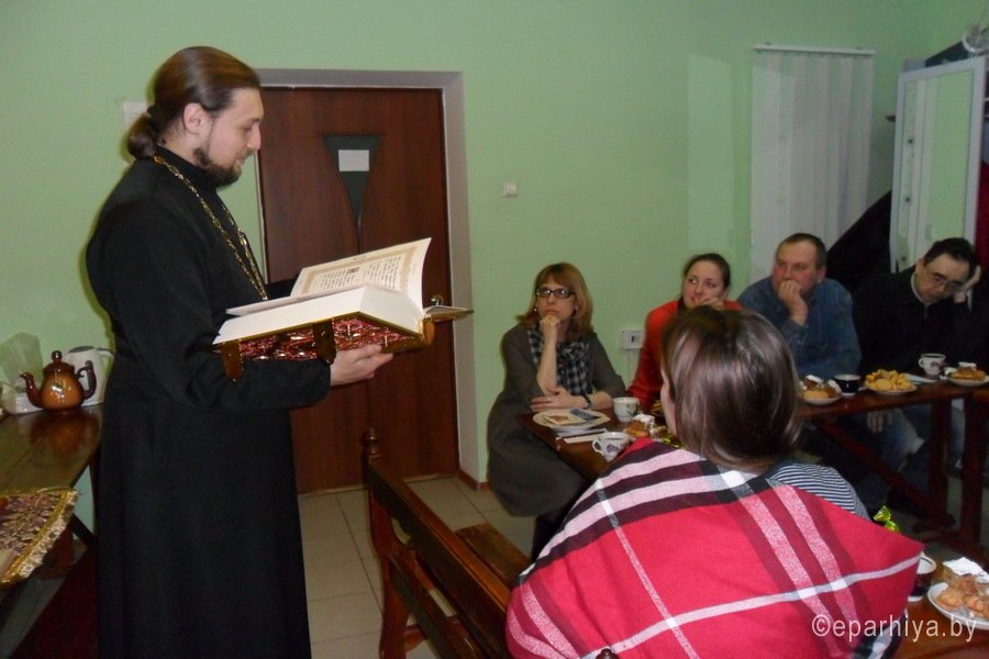 Настоящим праздником стал литературный вечер, посвященный Дню православной книги и прошедший 16 марта 2018 г. в крестильном доме прихода храма святого благоверного князя Александра Невского в г. Гомеле. Участниками мероприятия стали молодежь прихода и клирик прихода храма иерей Виталий Партий. Священник представил древнейшие книги из домашней библиотеки: Ф. Фаррар «Первые дни христианства» - в 2-х томах 1909 г., Служебник 1912 г., Евангелие 1915 г. и Евангелие конца 19 века, Молитвослов 20 века, Требник 19 века, а также показал новое Напрестольное Евангелие. Присутствующие с большим трепетом и волнением рассматривали книги, бережно прикасались к страницам. На встрече прозвучало и множество классических литературных произведений. Собравшиеся читали стихи А. Пушкина, М. Лермонтова, Ф. Тютчева, В. Соловьева. Затаив дыхание, слушали стихи С. Романова - Великого Князя; играли в литературную игру - буриме (сочинение шуточных стихов на заданные рифмы). Вечер получился душевным, искренним и закончился традиционным чаепитием. |