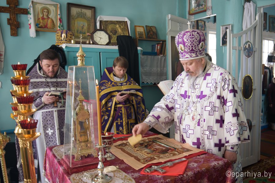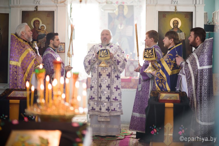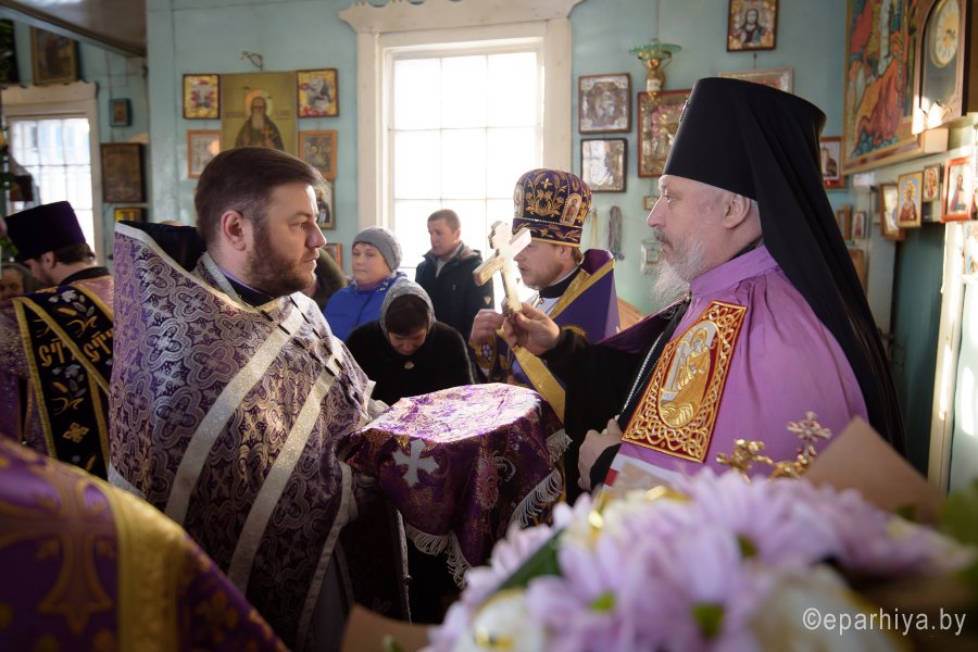 Божественную литургию в Неделю 4-ю Великого Поста, день памяти прп. Иоанна Лествичника 18 марта 2018г. Высокопреосвященейший Стефан, архиепископ Гомельский и Жлобинский совершил в храме Успения Пресвятой Богородицы аг.Городец. Высокопреосвященнейшему сослужили: секретарь Гомельской епархии протоиерей Георгий Алампиев, благочинный Рогачевского округа протоиерей Алексей Смотрицкий и настоятель прихода иерей Игорь Ковальчук. По окончании богослужения Владыка поздравил причастников с принятием Святых Христовых Таин, пообщался с прихожанами и в память об этом дне раздал всем присутствующим иконки. |