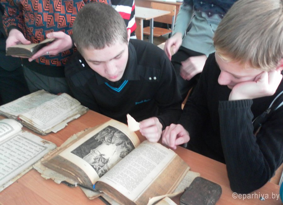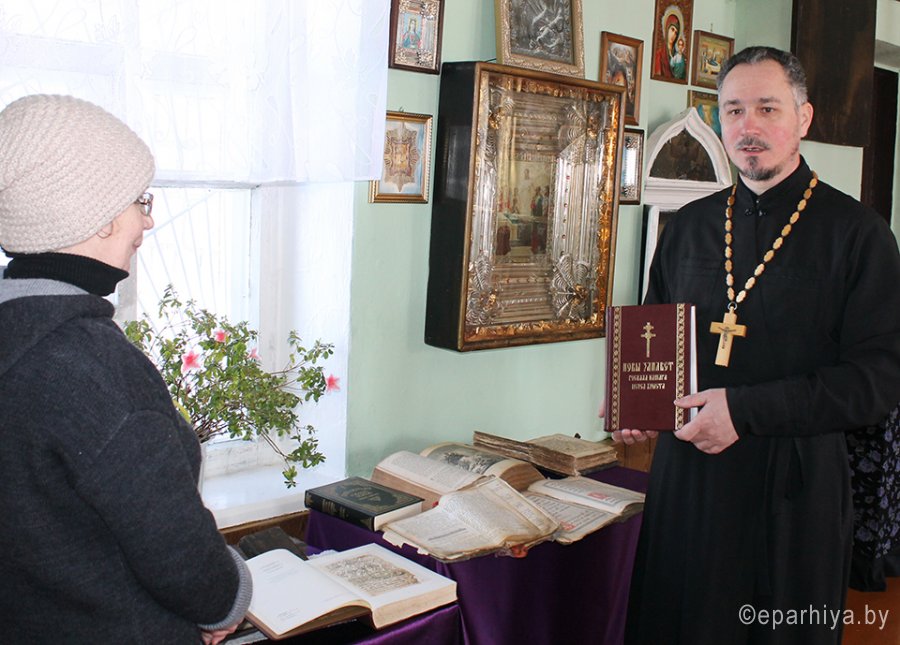 В Рогачёвском благочинии завершилась Неделя православной книги. Началась она 11 марта праздником «Книга на все времена», подготовленным учащимися старшей группы воскресной школы "Звонница" прихода храма святого благоверного князя Александра Невского в г. Рогачёве. Выставка книг «Кладезь мудрости духовной» представила вниманию ребят факсимильные издания Слуцкого Евангелия, Библии, изданной Франциском Скориной, и Летописного свода конца 16 века. Не только дети, но и взрослые увлечённо знакомились с редкими книгами. Кульминационным моментом праздника стало награждение участников первого этапа конкурса сочинений "Моя любимая книга". 14 марта, в День православной книги, в музее "Кола святаў" гимназии г.п. Корма учащиеся и педагоги познакомились с выставкой духовных книг, подготовленной приходом храма святителя Николая Чудотворца в г.п. Корма и учителем истории Иваном Игнатенко. 18 марта старинные книги были представлены и прихожанам храма. Настоятель прихода иерей Виталий Лехнович рассказал об истории и самых интересных экземплярах коллекции, а также представил издание Нового Завета на белорусском языке, вышедшее в прошлом году. В ходе беседы с регентом хора прихожане смогли подробнее узнать, какие книги используются в течение годового круга богослужений и в суточных службах, по каким книгам учились в старину и что любили читать наши православные предки. Во все века христианства существовали богослужебные книги, святоотеческая литература, богословские сочинения учителей церкви и доступные книги для простых верующих. Объединяет их главный смысл - спасение человека. И поэтому через всю историю православного книгопечатания красной нитью проходит эта основная идея. Именно этот посыл стал темой встречи настоятеля прихода храма св. Архангела Михаила аг. Тихиничи протоиерея Николая Степанова с учащимися средней школы имени Осипова А. А., которая состоялась 16 марта. В этот же день с учащимися Довской средней школы встретился настоятель прихода храма Покрова Пресвятой Богородицы д. Довск иерей Георгий Орловский. Речь шла о книге как живом источнике духовности. Священник отметил, что как для здоровья тела необходима здоровая пища, так и для души необходимо правильное духовное питание: участие в богослужениях и таинствах Церкви, чтение хороших книг. Необходимо выбирать книги для чтения с рассуждением, потому что в последнее время, когда издание книг упростилось, появилось много книг в ярких привлекательных обложках, но с сомнительным содержанием. В древности же, когда книги переписывались вручную, а печатание было очень сложным процессом, люди ценили содержание и поэтому первыми издавались книги духовные: Священное Писание, богослужебные книги. «Ни дня без книжки» - игровую программу с таким названием провела 18 марта Костова Александра Анатольевна, преподаватель младшей группы воскресной школы прихода храма святого благоверного князя Александра Невского, для своих подопечных и их родителей. Ребята узнали, как тяжело жилось без книг нашим предкам, каким важным событием стало изобретение письменности. С удовольствием дети отгадывали загадки о героях любимых сказок, играли в «перевёртыши» и складывали пословицы о книгах. Александра Анатольевна порекомендовала ребятам познакомиться с детскими книгами, которые есть в цер