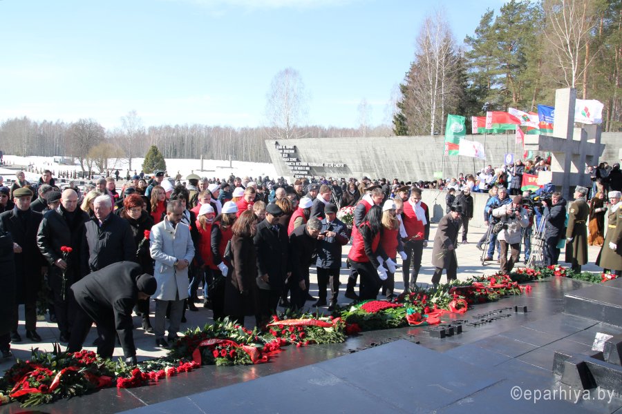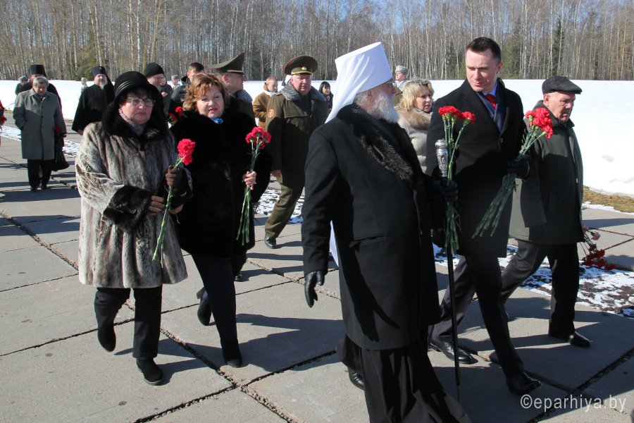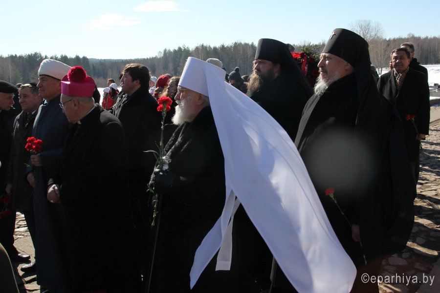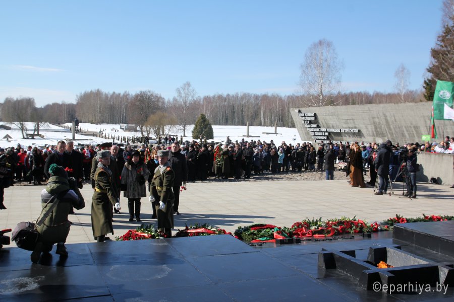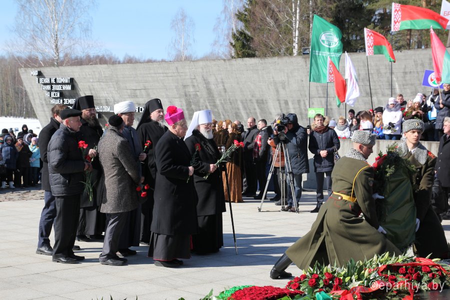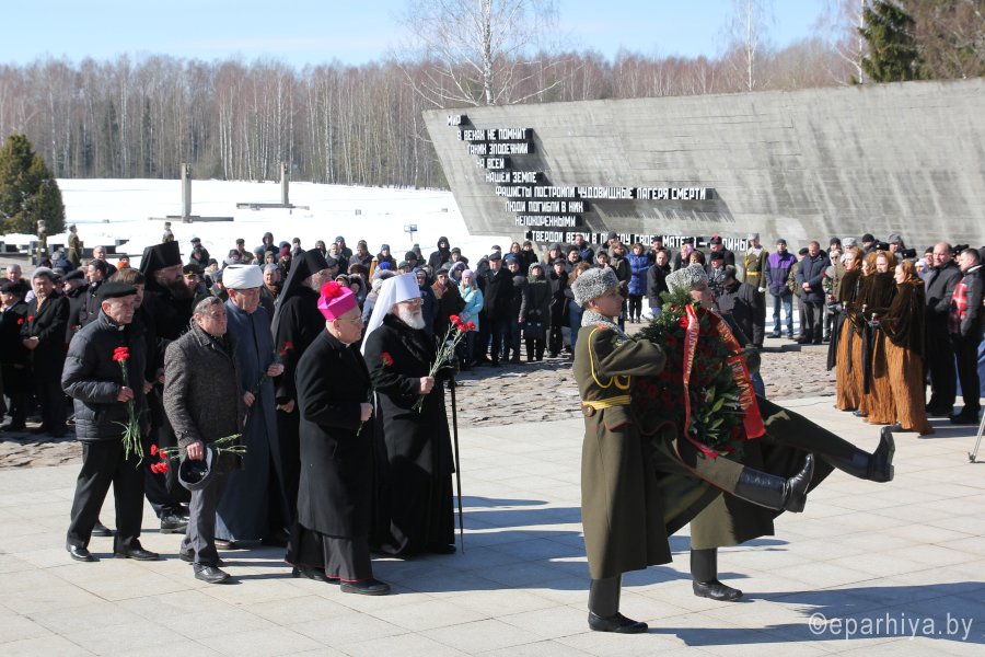 22 марта 2018 года в мемориальном комплексе «Хатынь» состоялся митинг-реквием «Хай ніколі не змоўкнуць Хатыні званы», приуроченный к 75-й годовщине хатынской трагедии. Участие в митинге приняли руководители традиционных конфессий Беларуси: митрополит Минский и Заславский Павел, Патриарший Экзарх всея Беларуси; митрополит Минско-Могилевский архиепископ Тадеуш Кондрусевич, председатель Конференции католических епископов в Беларуси; муфтий Мусульманского религиозного объединения в Республике Беларусь Абу-Бекир Шабанович. От Белорусской Православной Церкви участие в митинге принял также архиепископ Гомельский и Жлобинский Стефан и председатель Синодальной комиссии по канонизации святых Белорусской Православной Церкви архимандрит Амвросий (Шевцов) К Вечному огню на территории мемориала были возложены венки от Президента Республики Беларусь, государственных органов, общественных организаций, дипломатического корпуса, традиционных конфессий, передает БелТА. Глава Администрации Президента Наталья Ивановна Кочанова зачитала обращение Главы государства к соотечественникам по случаю скорбной даты. Митрополит Павел обратился к собравшимся с архипастырским словом, в котором подчеркнул, что белорусский народ не держит зла, но помнит о трагическом прошлом. Владыка Экзарх пожелал, чтобы на благословенной белорусской земле больше никогда не повторялись события военного лихолетья. *** Ровно 75 лет тому назад гитлеровские каратели уничтожили белорусскую деревню Хатынь. 22 марта 1943 года они сожгли заживо и расстреляли почти всех жителей — 149 человек, в том числе 75 детей. Созданный на месте Хатыни мемориальный комплекс стал мировым символом бесчисленных жертв, страданий и мужества белорусского народа в Великой Отечественной войне. Судьбу Хатыни разделили сотни других белорусских деревень. По материалам: Church.by |