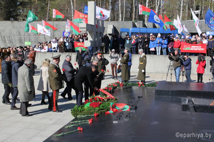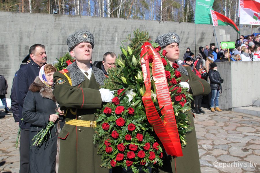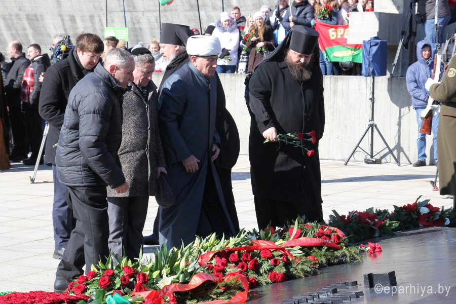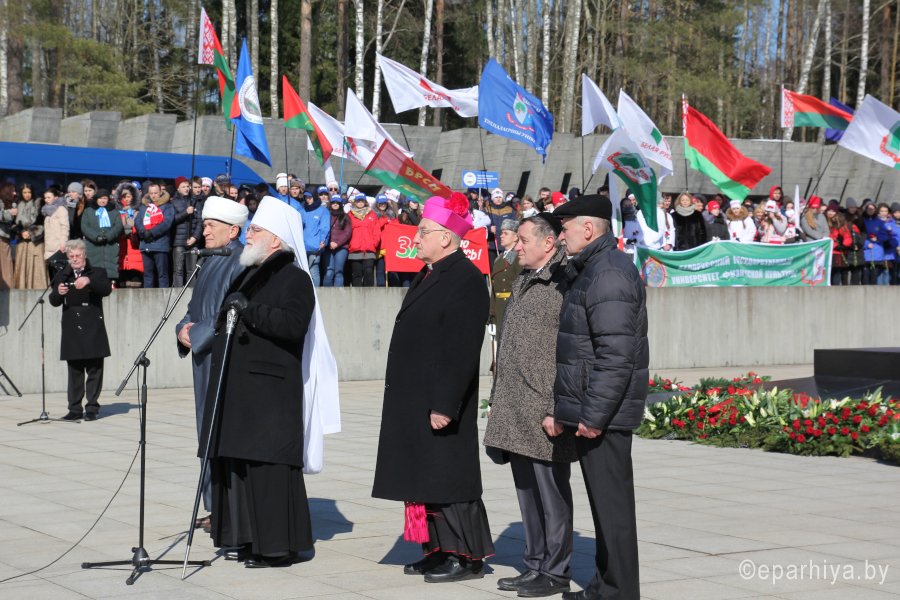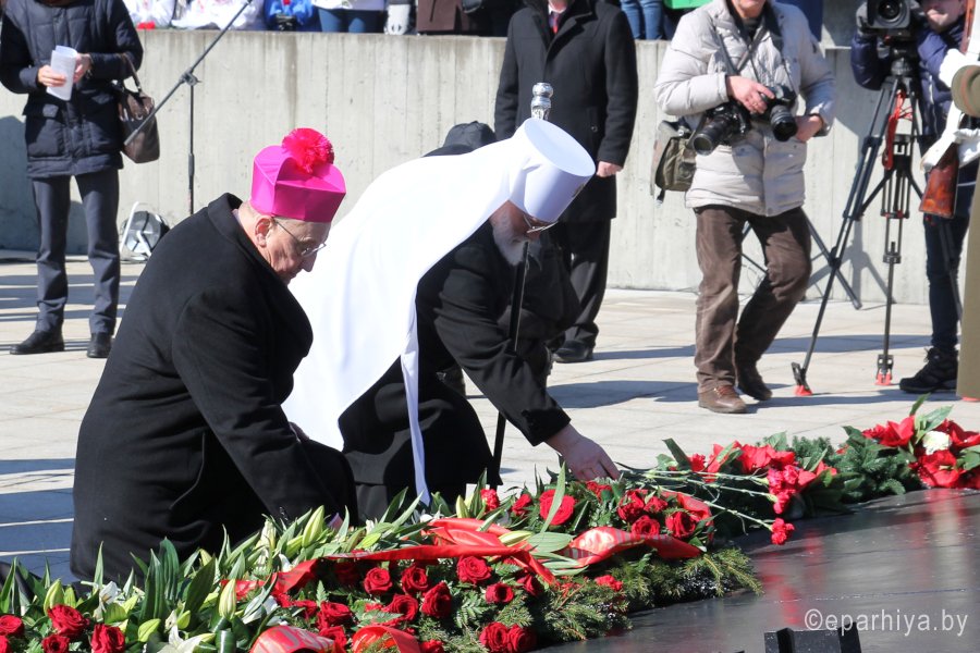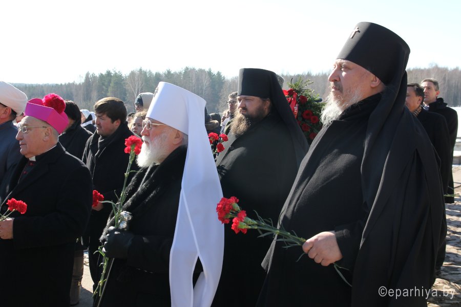 22 марта 2018 года в мемориальном комплексе «Хатынь» состоялся митинг-реквием «Хай ніколі не змоўкнуць Хатыні званы», приуроченный к 75-й годовщине хатынской трагедии. Участие в митинге приняли руководители традиционных конфессий Беларуси: митрополит Минский и Заславский Павел, Патриарший Экзарх всея Беларуси; митрополит Минско-Могилевский архиепископ Тадеуш Кондрусевич, председатель Конференции католических епископов в Беларуси; муфтий Мусульманского религиозного объединения в Республике Беларусь Абу-Бекир Шабанович. От Белорусской Православной Церкви участие в митинге принял также архиепископ Гомельский и Жлобинский Стефан и председатель Синодальной комиссии по канонизации святых Белорусской Православной Церкви архимандрит Амвросий (Шевцов) К Вечному огню на территории мемориала были возложены венки от Президента Республики Беларусь, государственных органов, общественных организаций, дипломатического корпуса, традиционных конфессий, передает БелТА. Глава Администрации Президента Наталья Ивановна Кочанова зачитала обращение Главы государства к соотечественникам по случаю скорбной даты. Митрополит Павел обратился к собравшимся с архипастырским словом, в котором подчеркнул, что белорусский народ не держит зла, но помнит о трагическом прошлом. Владыка Экзарх пожелал, чтобы на благословенной белорусской земле больше никогда не повторялись события военного лихолетья. *** Ровно 75 лет тому назад гитлеровские каратели уничтожили белорусскую деревню Хатынь. 22 марта 1943 года они сожгли заживо и расстреляли почти всех жителей — 149 человек, в том числе 75 детей. Созданный на месте Хатыни мемориальный комплекс стал мировым символом бесчисленных жертв, страданий и мужества белорусского народа в Великой Отечественной войне. Судьбу Хатыни разделили сотни других белорусских деревень. По материалам: Church.by |
