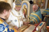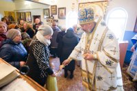Божественную литургию в день Похвалы пресвятой Богородицы, субботу Акафиста 24 марта 2018г. Высокопреосвященнейший Стефан, архиепископ Гомельский и Жлобинский совершил в храме иконы Божией Матери "Скоропослушница" г.Гомеля. Высокопреосвященнейшему сослужили: секретарь Гомелькой епархии протоиерей Георгий Алампиев, благочинный Гомельского городского округа протоиерей Игорь Ольшанов, настоятель прихода игумен Мефодий (Казаков) и духовенство храма. По окончании богослужения Владыка совершил освящение накупольных крестов, обратился к молящимся со словами Архипастырского назидания и в память об этом дне раздал всем присутствующим иконки. На язык жестов для слабослышащих ход богослужения переводил клирик храма иконы Божией Матери "Скоропослушница" г. Гомеля иерей Александр Пранкевич. Уже два года прошло с момента образования православной общины глухих при храме в честь иконы Божьей Матери «Скоропослушница». Татьяна Кубатина говорит: «Мы ходили смотрели, как проходит Божественная литургия и очень хотели понять и услышать, как именно молятся люди, душа тянулась к храму, но, к сожалению, мы могли прочитать только по губам священника некоторые слова, и просто присутствовали…. Теперь мы можем все понять и можем даже исповедоваться на языке жестов, спросить совета у священника, и мы благодарны Богу за это». |